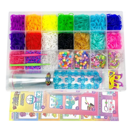 - 1 Rainbow Loom 2.0, 2 άγκιστρα και οδηγίες, όλα σε μια οργανωμένη θήκη.