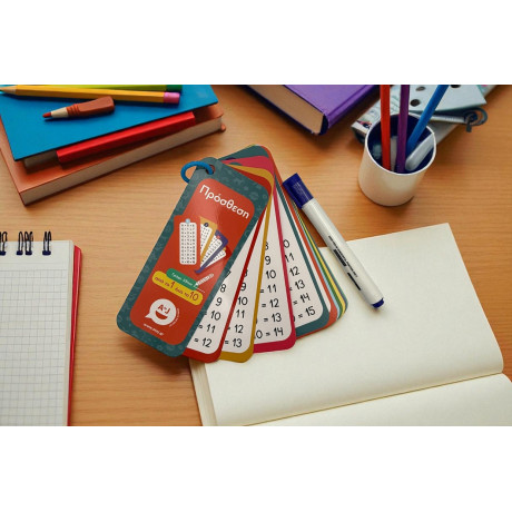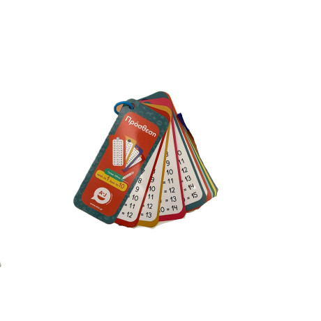 Μια κάρτα για κάθε αριθμό από το 1 έως το 10. Στην μπροστινή όψη κάθε κάρτας οι πράξεις για εκμάθηση και στην πίσω όψη οι πράξεις με κενά πεδία για εξάσκηση. Χρειάζεται μόνο ένας μαρκαδόρος που σβήνει (για ασπροπίνακα) και πολλή όρεξη για μαθηματικά παιχνίδια στο σπίτι, στις διακοπές, στο αυτοκίνητο… παντού!