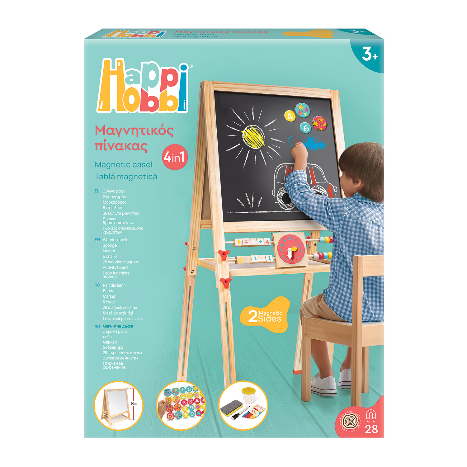 HappiHobbi Magnet Ξύλινος Μαγνητικός Επιδαπέδιος Πίνακας 2 Όψεων Για 3+ Χρονών