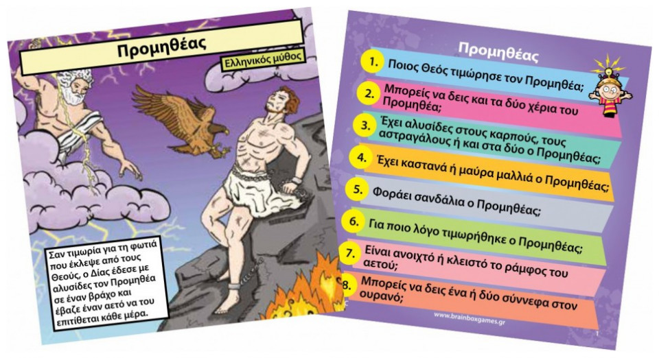Κάποιοι από τους μύθους που περιλαμβάνει αυτό το BrainBox είναι: Το κουτί της Πανδώρας, Ο Δούρειος Ίππος, Ο Οδυσσέας και ο Κύκλωπας, Οι Δώδεκα Άθλοι του Ηρακλή, Ο Φοίνικας, Ο Κένταυρος, Ο Προμηθέας, Ο Δαίδαλος και ο Ίκαρος και άλλοι πολλοί..