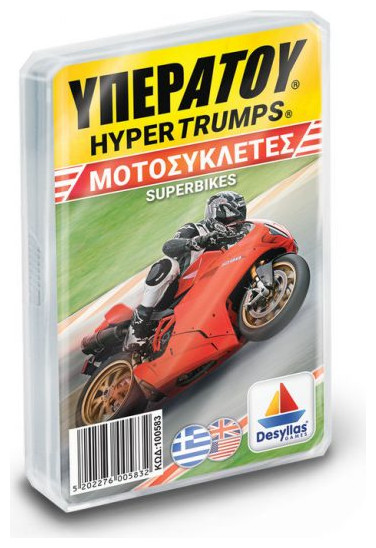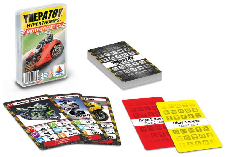 Η νέα τράπουλα ΥΠΕΡΑΤΟΥ™: Μοτοσυκλέτες παρουσιάζει τα κορυφαία μοντέλα μοτοσυκλετών, από κλασικές έως sport και adventure, με χαρακτηριστικά όπως ιπποδύναμη, τελική ταχύτητα, βάρος και χωρητικότητα κινητήρα.