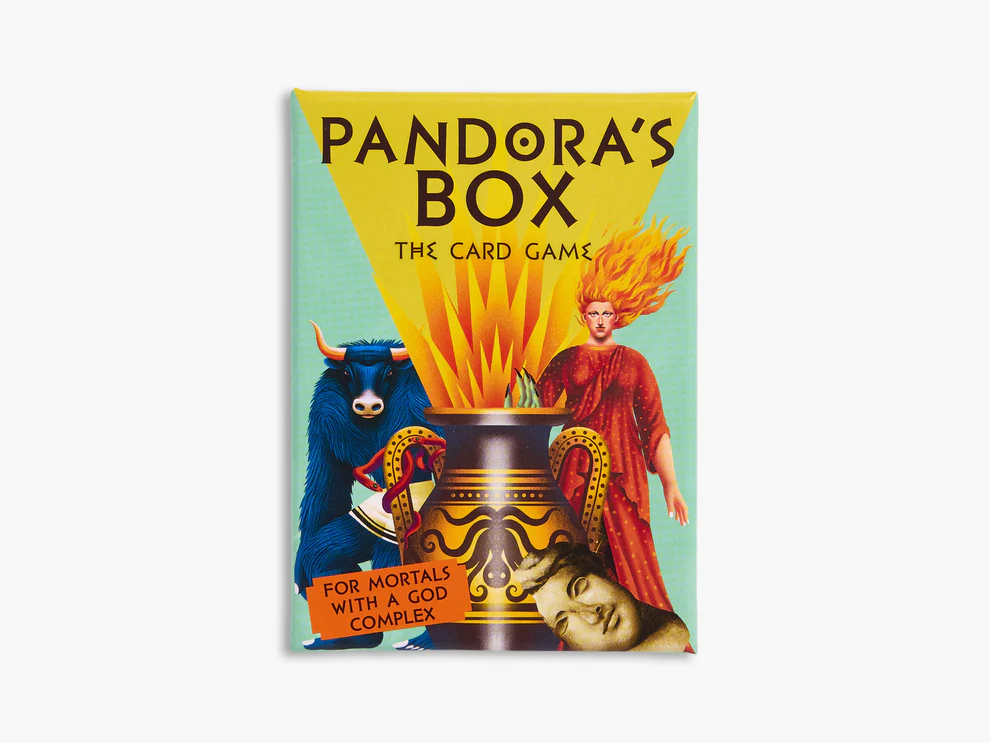Pandora’s Box is a fast-paced strategy game where you’ll connive to be the last player left. Steal cards, eliminate your opponents and hold onto the Hope card to emerge victorious. To start the game, set aside the Hope card and shuffle the deck. Deal five cards face down to each player, then place the shuffled deck on top of the Hope card. The player who opened Pandora’s Box goes first!