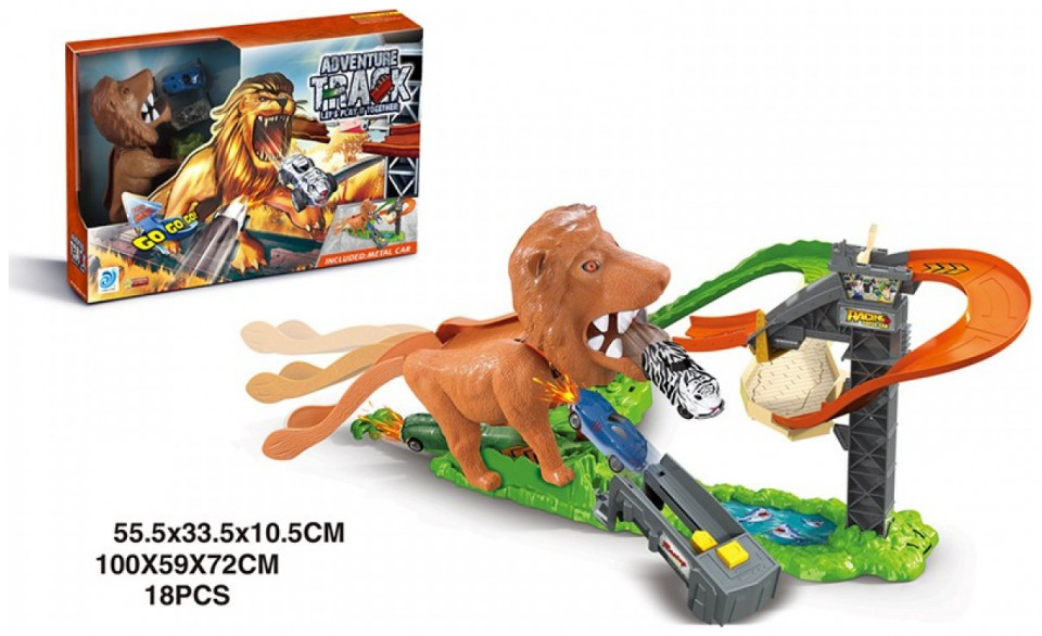 Εκτόξευσε στην πίστα το αυτοκινητάκι σου. Προσχή μην το φάει το λιοντάρι!! Το σετ περιλαμβάνει ένα μεταλλικό αυτοκινητάκι.