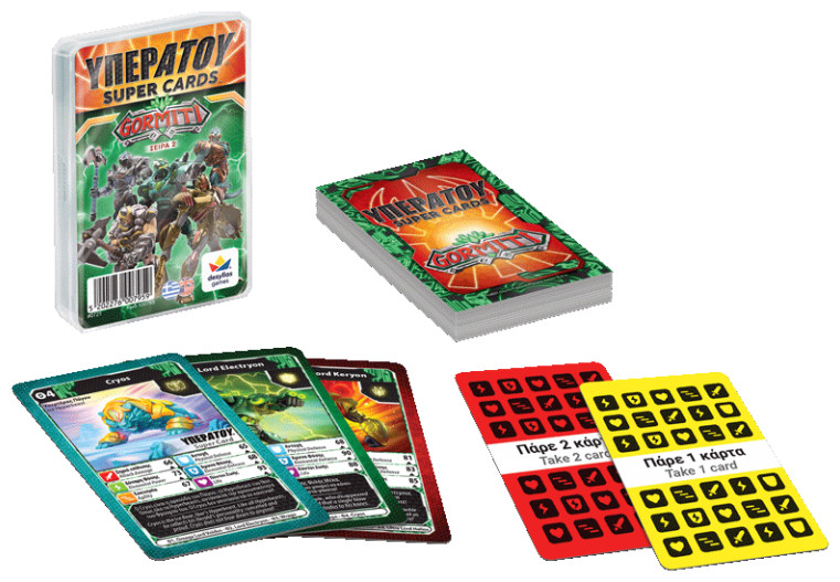 Διάλεξε χαρακτηριστικό, σύγκρινε το με του αντιπάλου, και κέρδισε την κάρτα! Χρησιμοποίησε έξυπνα την κάρτα ΥΠΕΡΑΤΟΥ ™ και βγες μπροστά! Παίξε και μάθε τα πάντα για τα πιο απίστευτα οχήματα και ζώα του πλανήτη!
