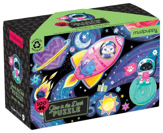 Τώρα, το παιδί έχει έναν επιπλέον λόγο ώστε να καταφέρει να ολοκληρώσει το παζλ! Συνθέστε μια πολύχρωμη διαγαλαξιακή διαστημική σκηνή με το φωσφορίζον παζλ Διάστημα της Mudpuppy. Αφού ενώσετε μαζί τα 100 κομμάτια του παζλ, σβήστε τα φώτα για να δείτε το παζλ να λαμπυρίζει μέσα στο σκοτάδι!