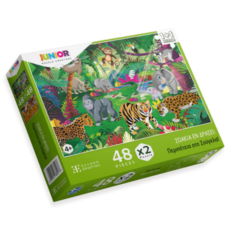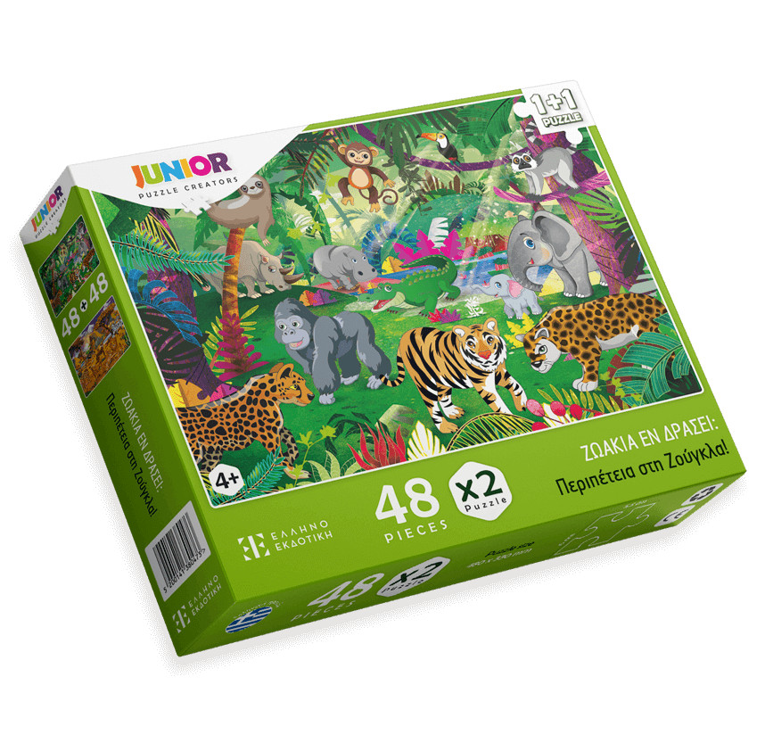 ΖΩΑΚΙΑ ΕΝ ΔΡΑΣΕΙ: Περιπέτεια στη Ζούγκλα! | 2 Παζλ x 48 Κομμάτια