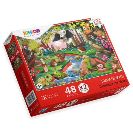 ΖΩΑΚΙΑ ΕΝ ΔΡΑΣΕΙ: Περιπέτεια στο Δάσος! | 2 Παζλ x 48 Κομμάτια