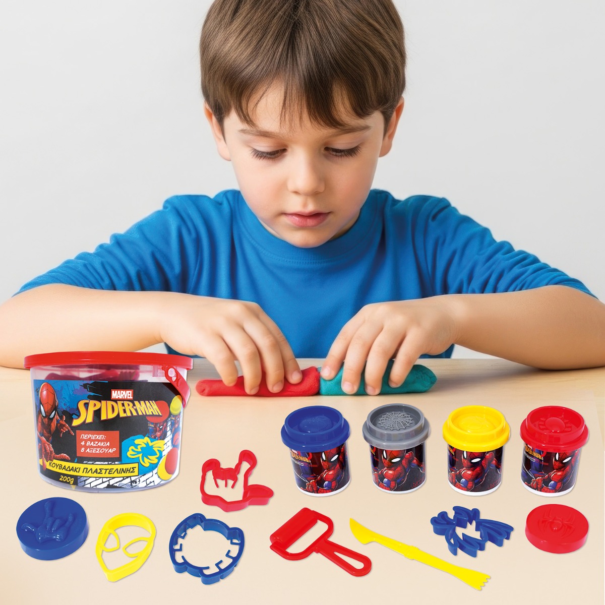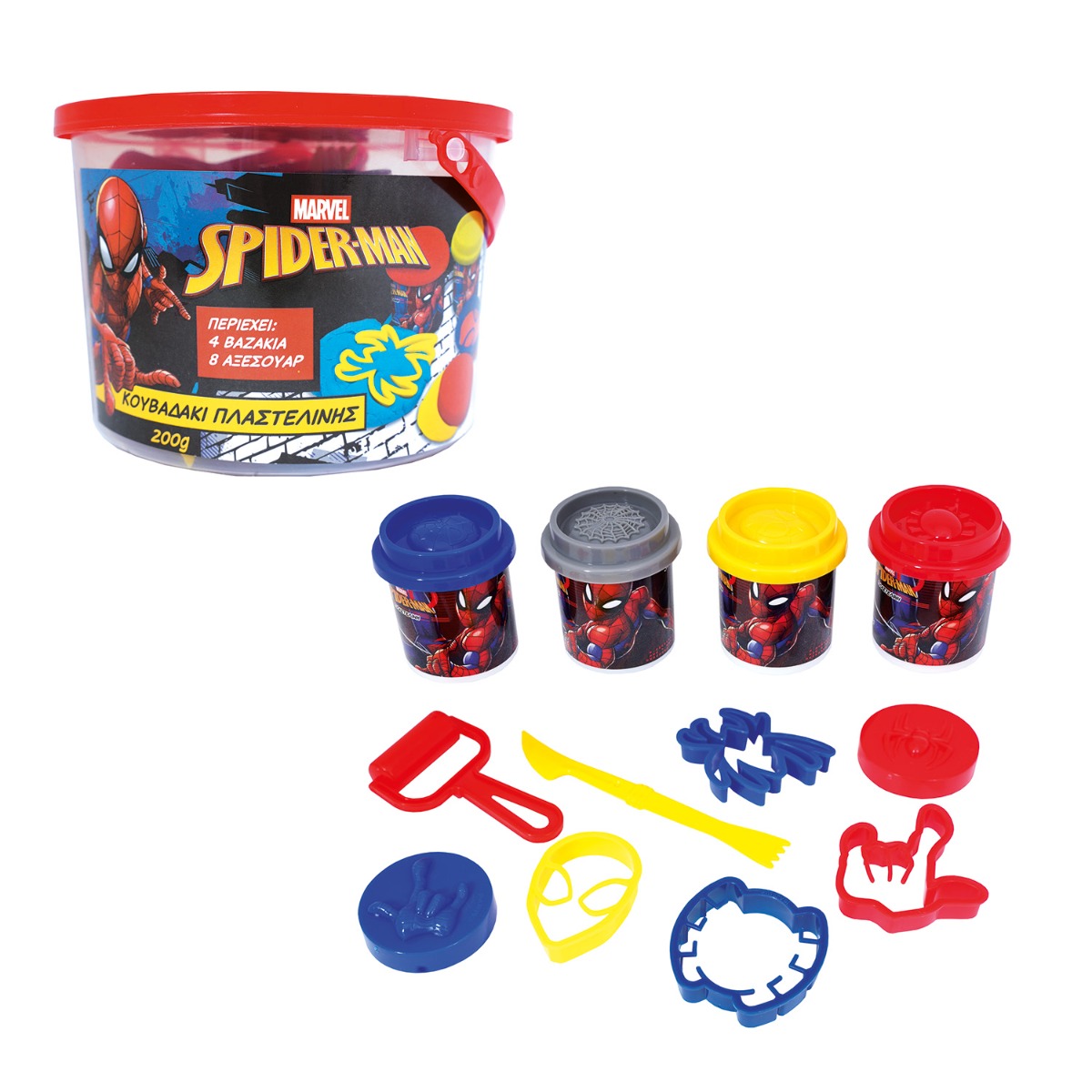 AS Πλαστελίνη Marvel Spiderman Κουβαδάκι Με 4 Βαζάκια Και 8 Εργαλεία 200g 3+ Χρονών