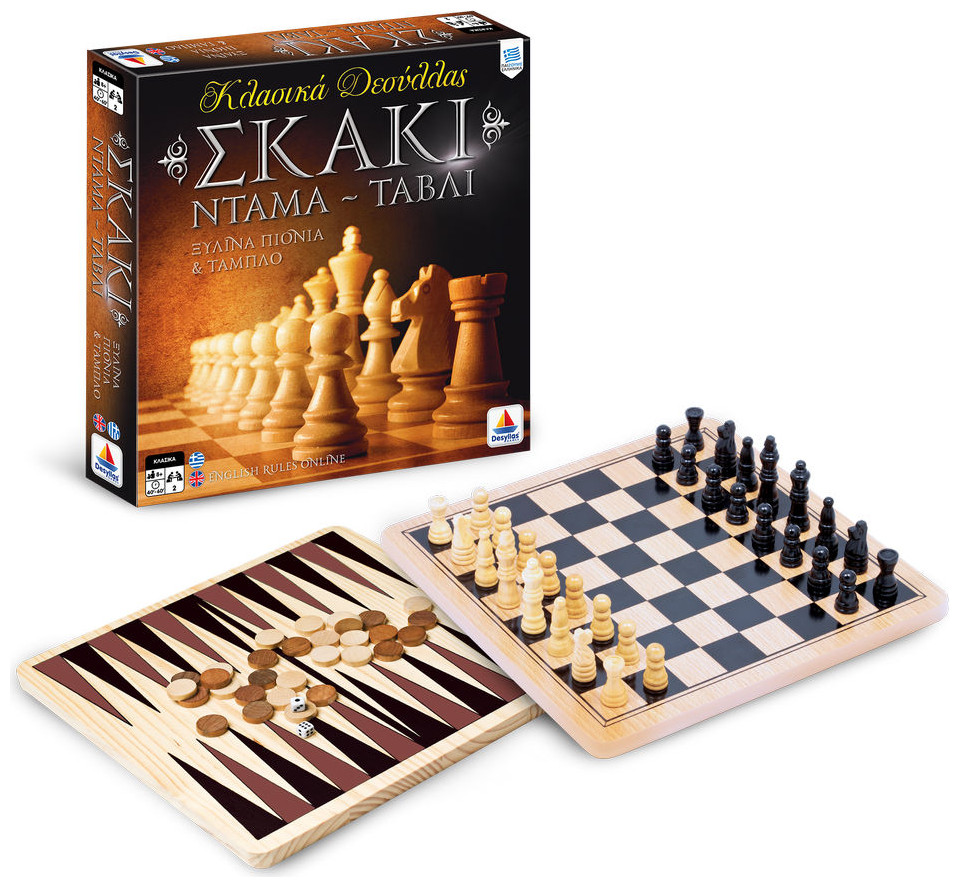 Απολαύστε μια συναρπαστική παρτίδα Σκάκι – Ντάμα – Τάβλι με τον αντίπαλό σας, πάνω στο όμορφο ξύλινο ταμπλό (διαστάσεις 29 x 29 x 2 εκ.) και αναπτύξτε τη στρατηγική σας με συμμάχους τα ξύλινα πιόνια του παιχνιδιού! Περιέχει κανόνες και στα Αγγλικά σε ψηφιακή μορφή.