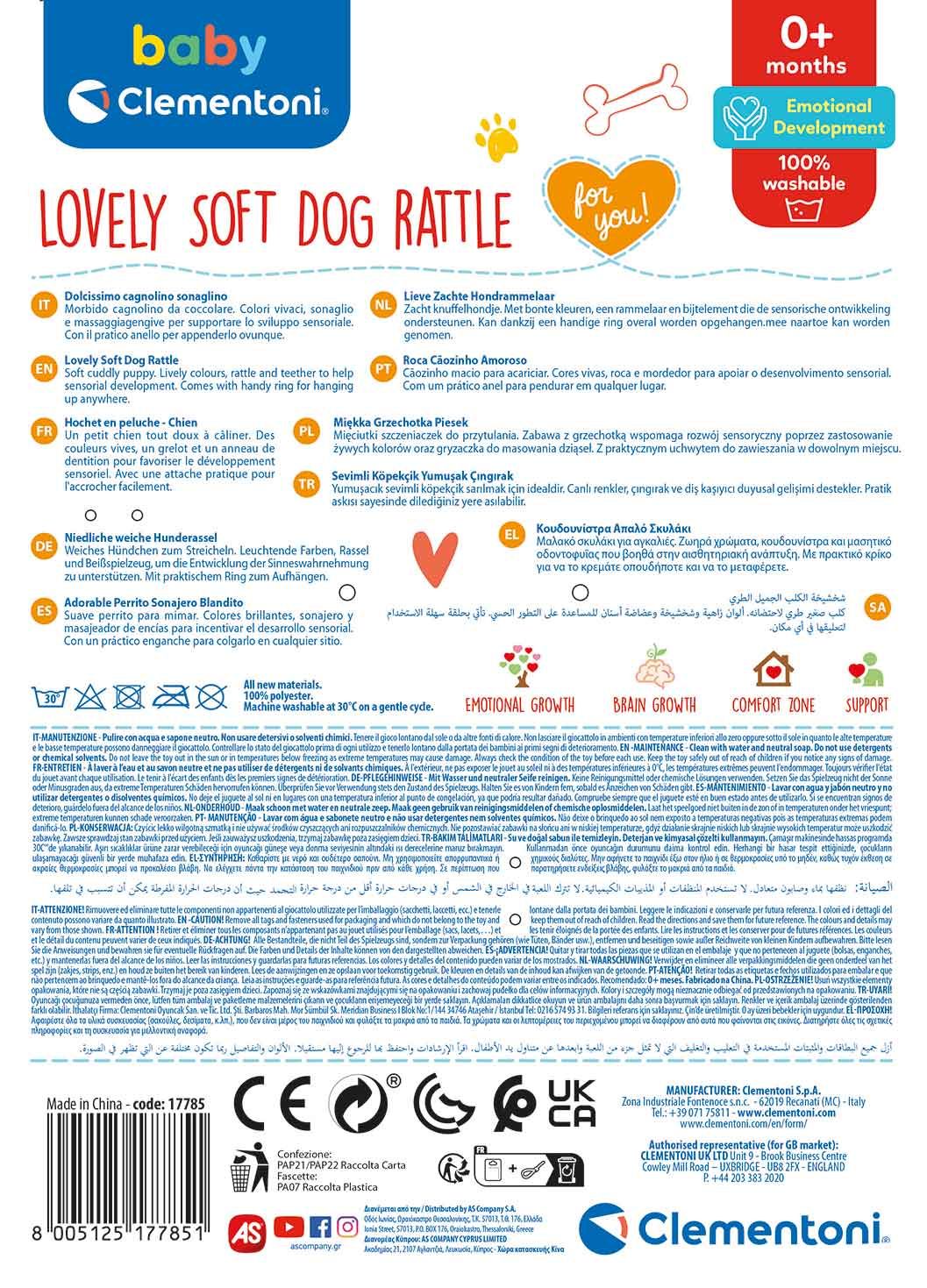 Baby Clementoni For You Βρεφική Κουδουνίστρα Μαλακό Σκυλάκι Για 0+ Μηνών