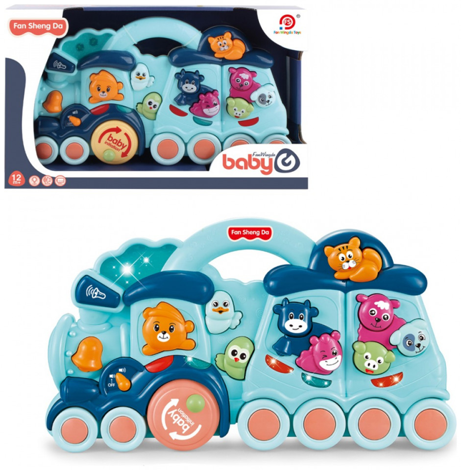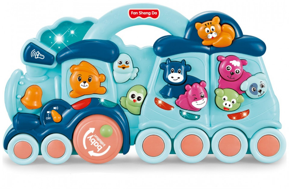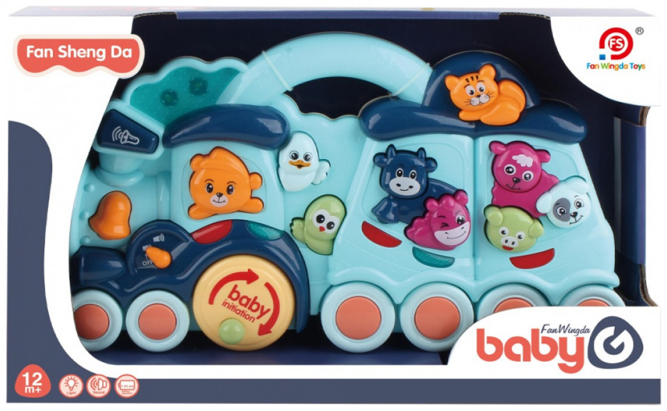 Baby μουσικό τρενάκι με ζώα. Το μωράκι θα διασκεδάσει με τους ήχους των ζώων και θα απολαύσει ευχάριστες μελωδίες. Περιέχει κουμπί αυξομείωσης ήχου.