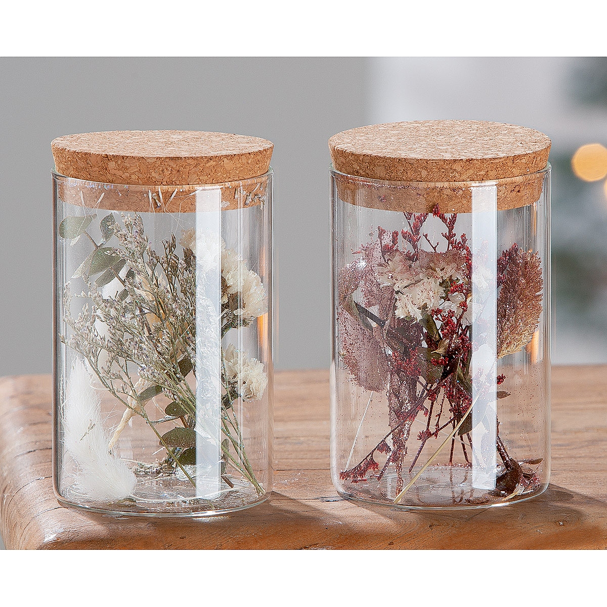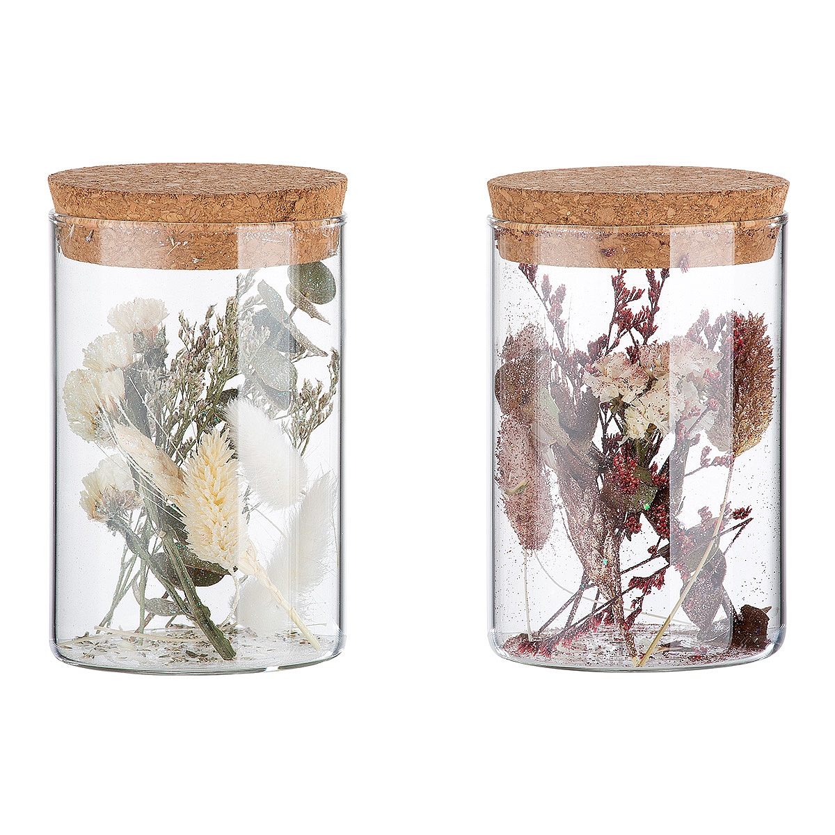 Διακοσμητικό ArteLibre Αποξηραμένο Λουλούδι Σε Δοχείο Με Glitter Διάφανο Γυαλί 12.5cm Σε 2 Σχέδια