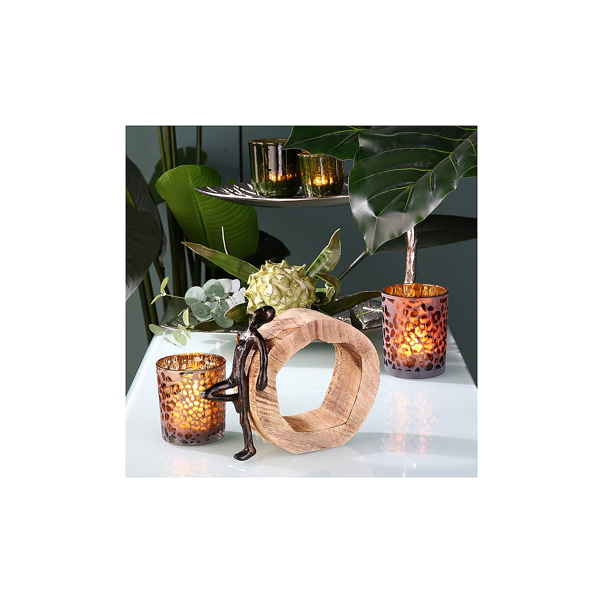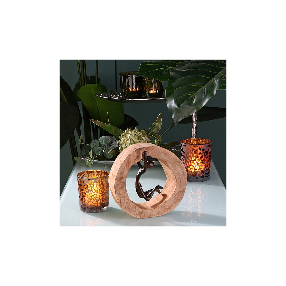 Διακοσμητικό ArteLibre Φιγούρα Σε Κύκλο Μπρονζέ/Φυσικό Αλουμίνιο/Ξύλο 7x19x19cm Σε 3 Σχέδια