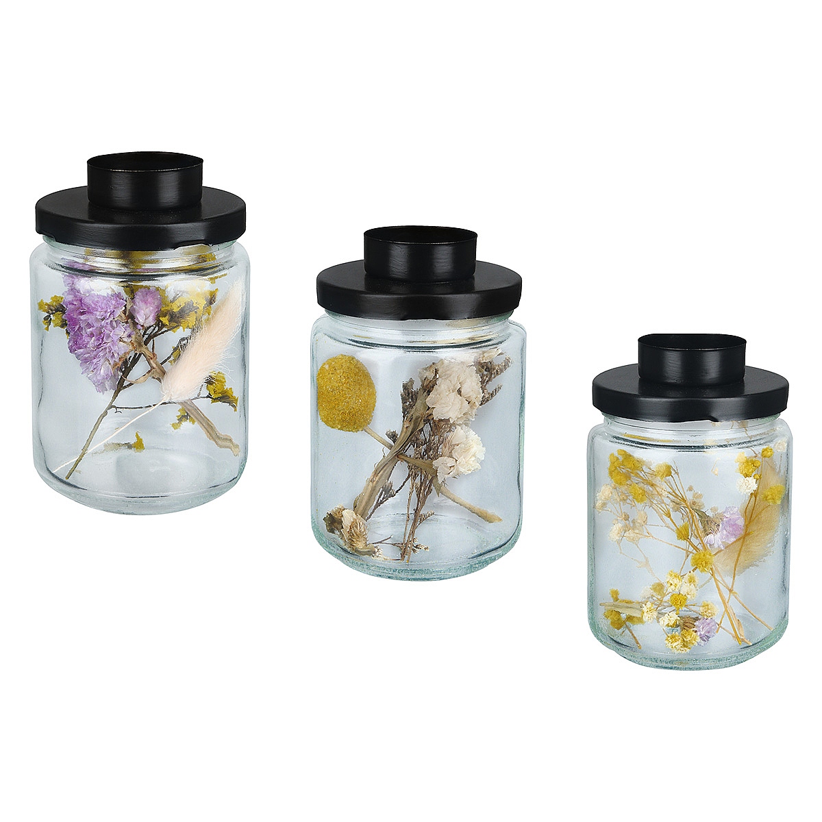 Δοχείο ArteLibre Με Αποξηραμένα Φυτά Και Βιδωτό Καπάκι Με Θήκη Ρεσώ Διάφανο/Μαύρο Γυαλί/Μέταλλο 12.5cm Σε 3 Σχέδια