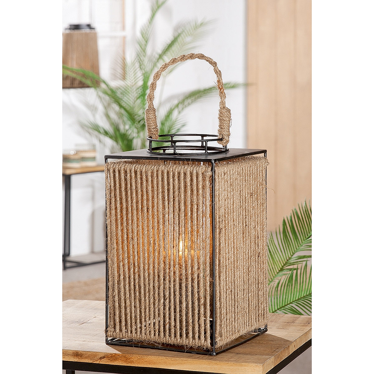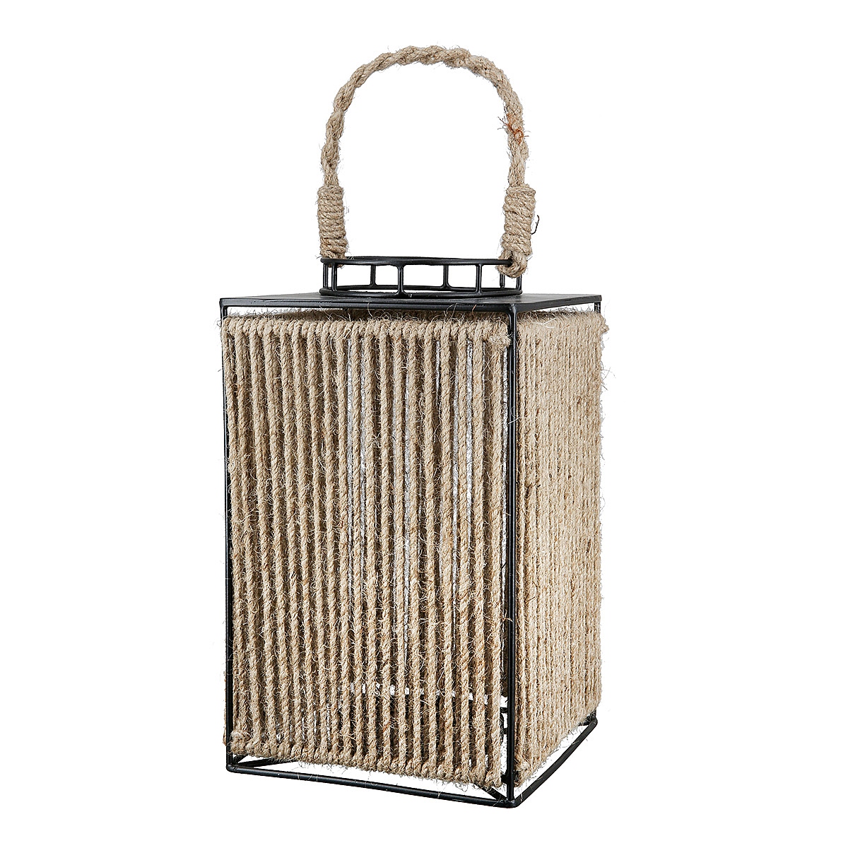 Φανάρι ArteLibre Μαύρο/Φυσικό Μέταλλο/Σχοινί 18x18x30cm