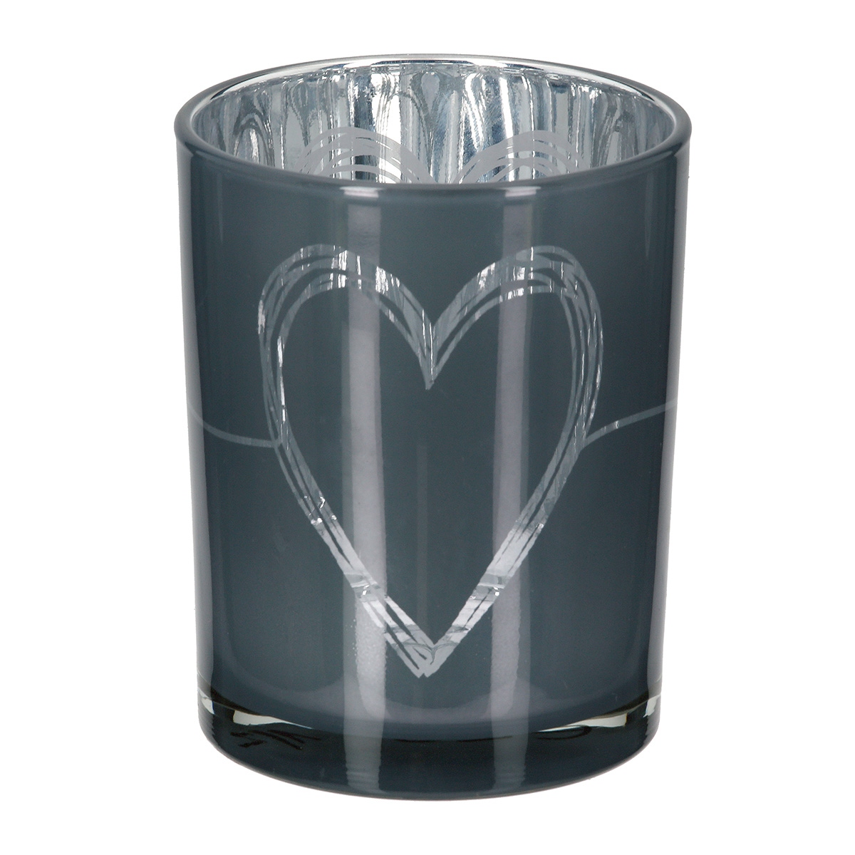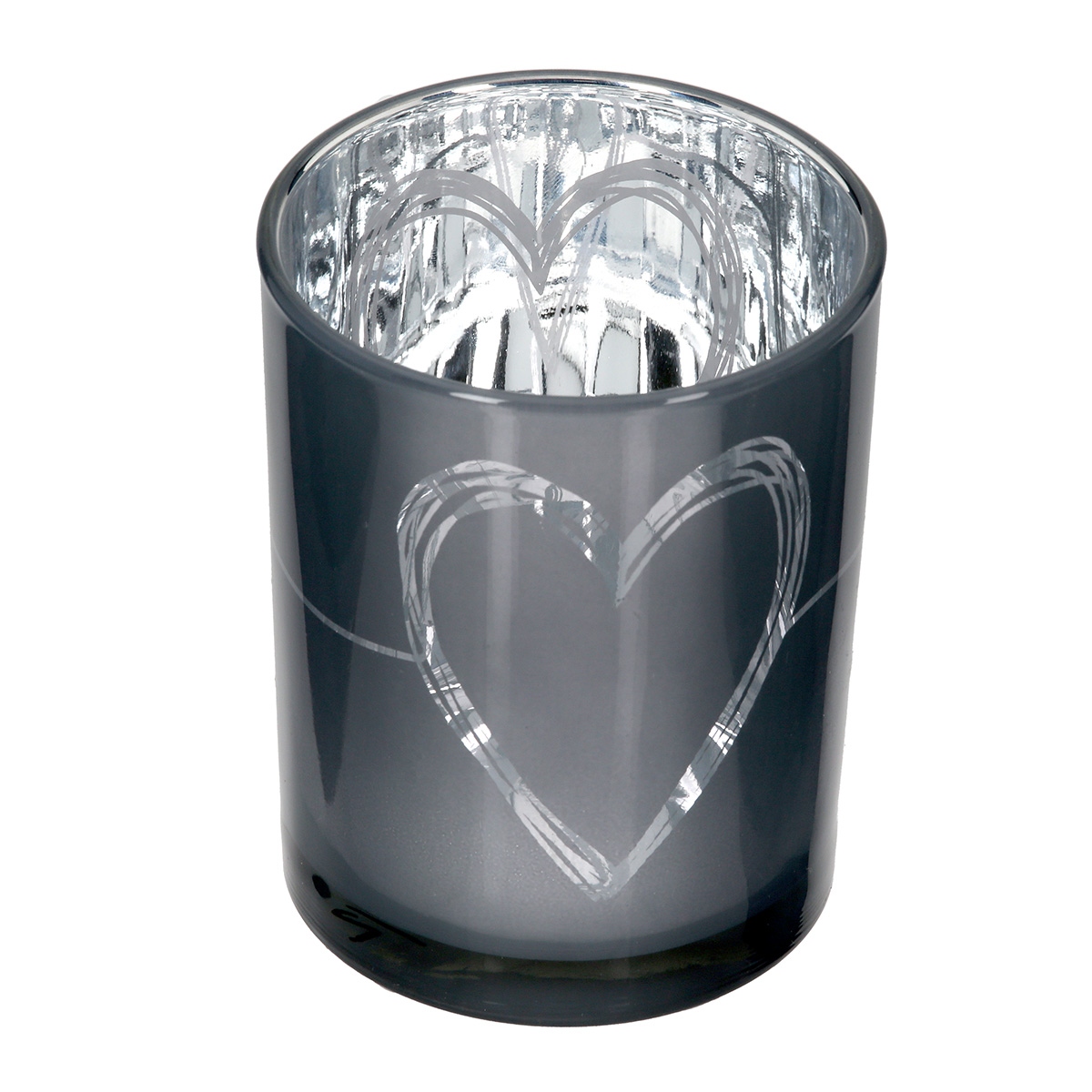 Φανάρι κυλινδρικό μοτίβο καρδιάς Γυάλινα σκεύη Γκρι Λευκό 2 Ποικιλία D10X13Cm D10X13Cm
