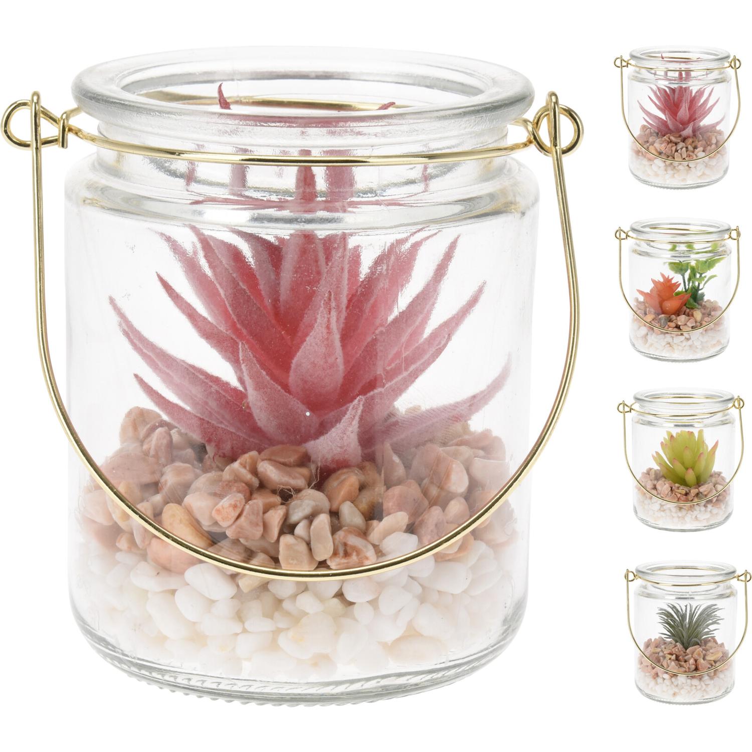 Φυτό Τεχνητό ArteLibre Σε Γυάλινο Δοχείο Με Χρυσό Χερούλι 80x80x100mm Σε 4 Χρώματα