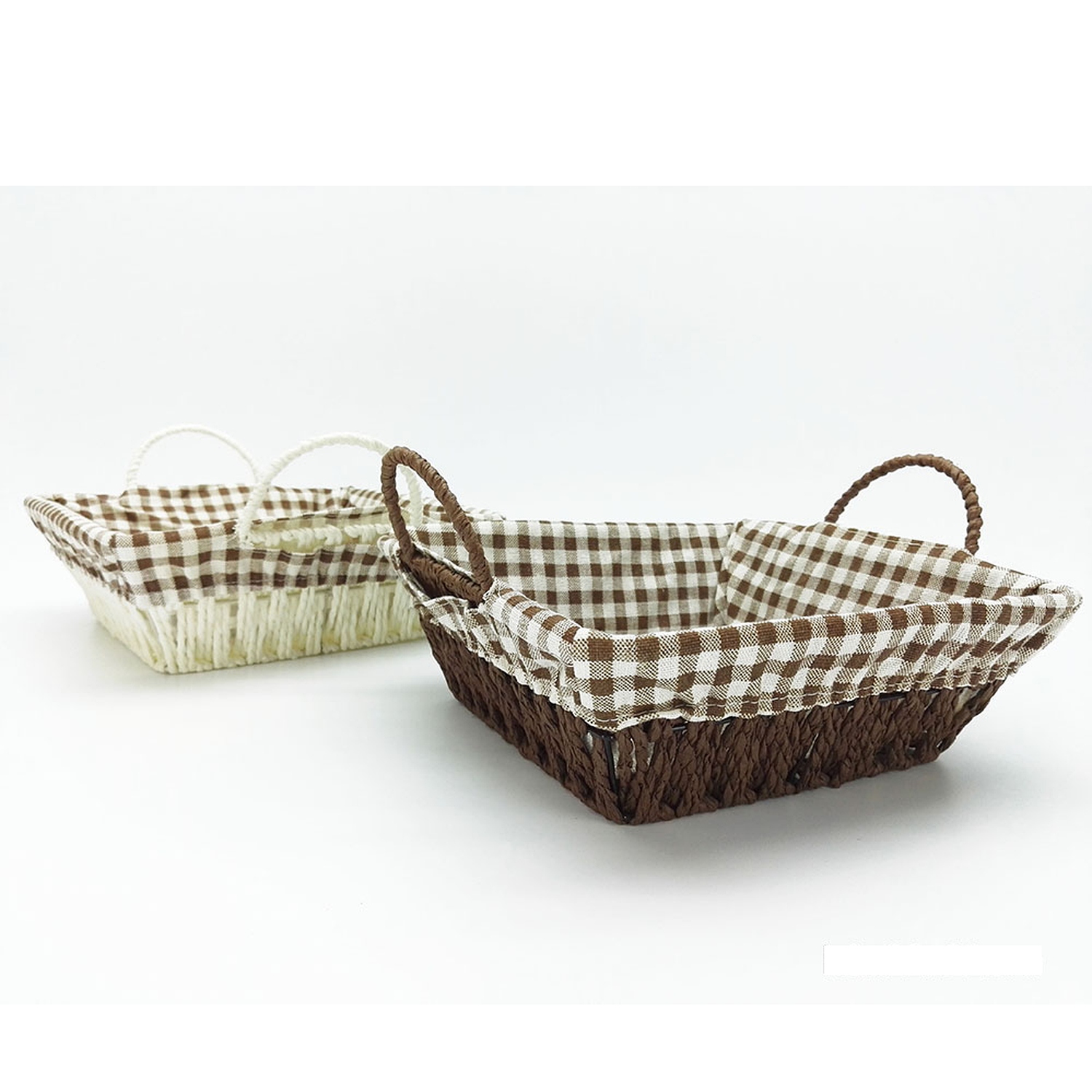 Καλάθι Τετράγωνο Καφέ/Λευκό Ύφασμα/Ξύλο 22x22x8cm 2Τμχ