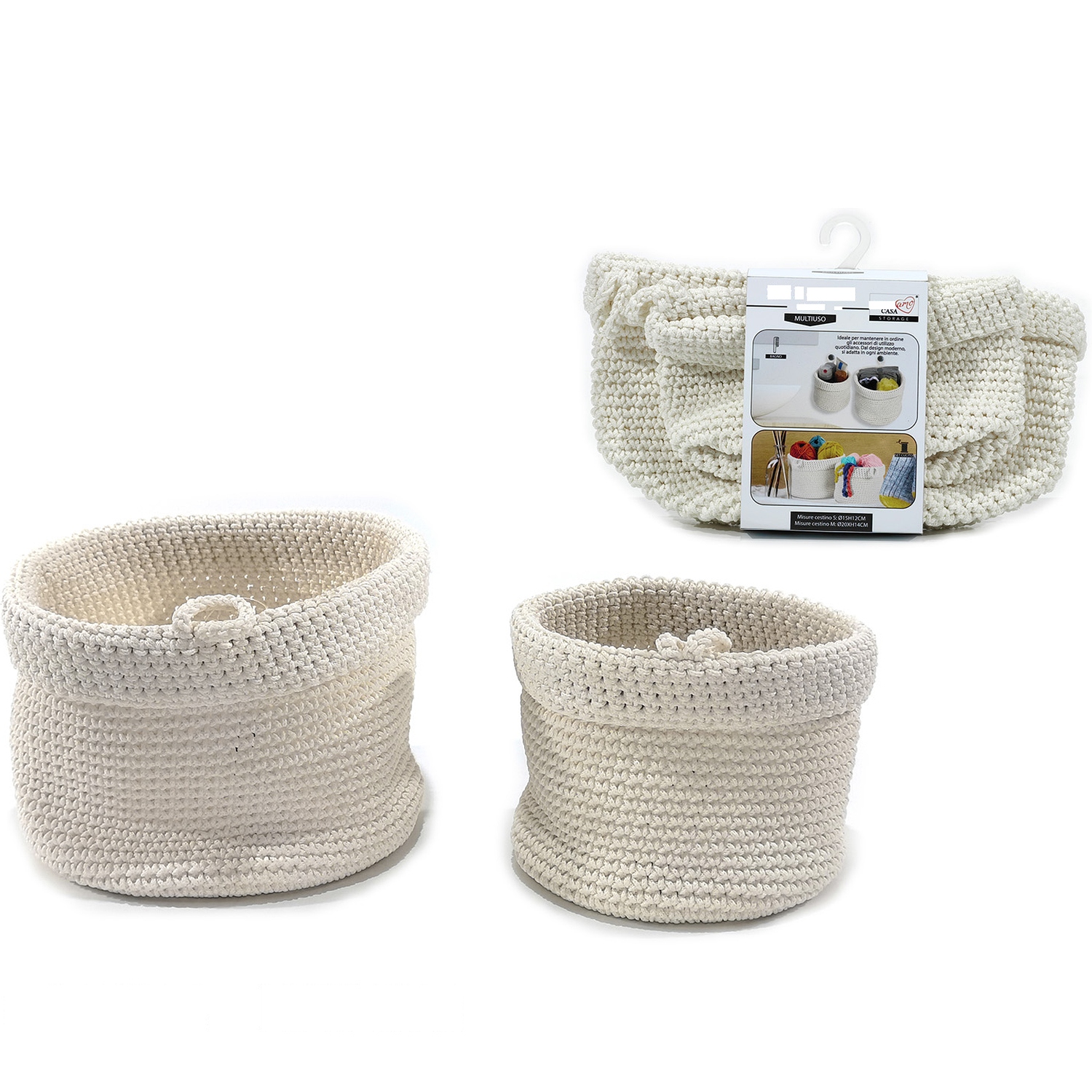 Καλάθια Στρογγυλά Λευκό Βαμβάκι Φ15/20xH20cm 2Τμχ