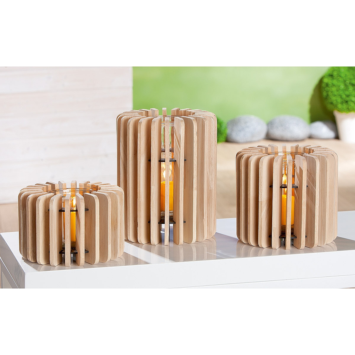 Κηροπήγιο ArteLibre Φυσικό/Διάφανο Ξύλο/Γυαλί 25cm