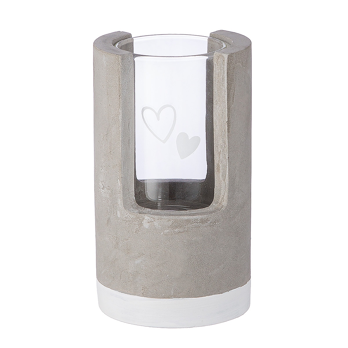 Κηροπήγιο ArteLibre Με Διακόσμηση Καρδιές Γκρι/Διάφανο Γυαλί/Τσιμένο Φ7x12cm
