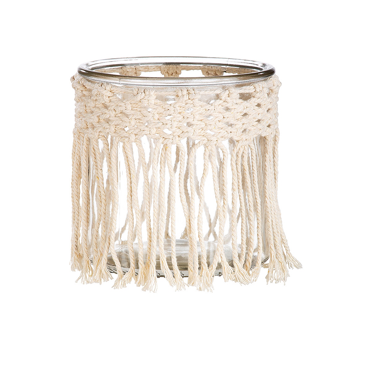 Κηροπήγιο ArteLibre Με Μακραμέ Διακόσμηση Διάφανο/Μπεζ Γυαλί 12x12x12cm