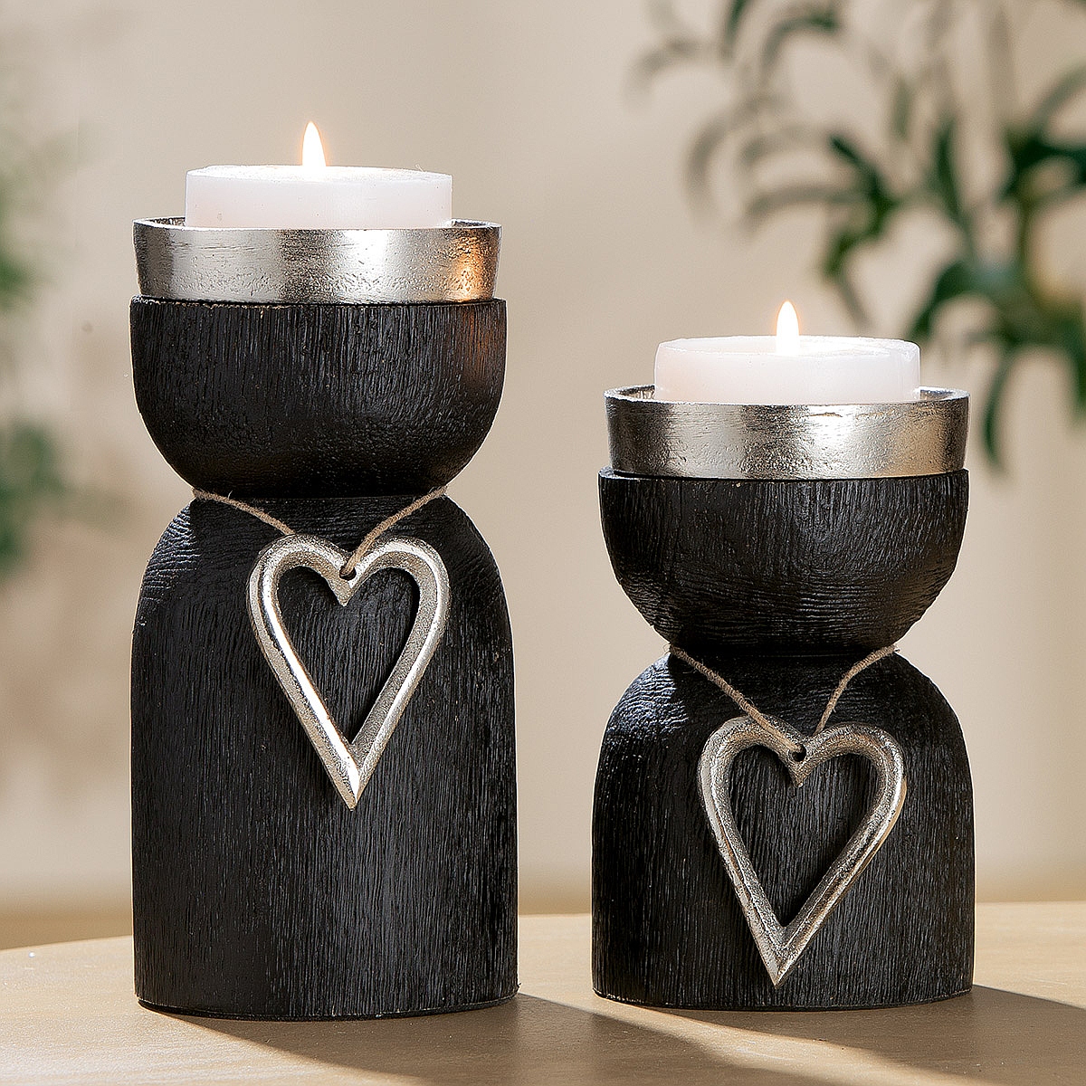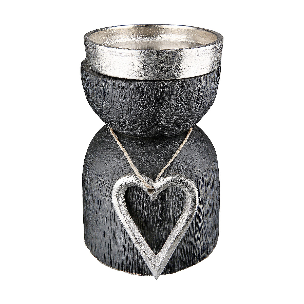 Κηροπήγιο Με Καρδιά ArteLibre Μαύρο Αλουμίνιο/Ξύλο Φ8x13cm