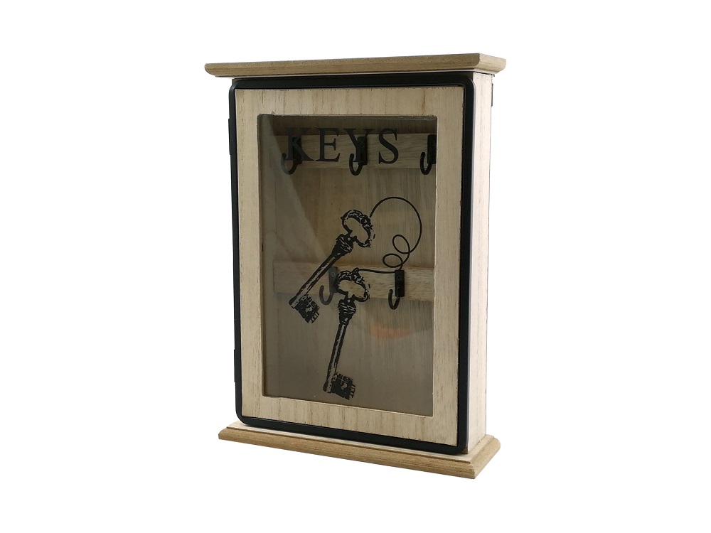 Κλειδοθήκη Με 5 Θέσεις Φυσικό/Μαύρο Ξύλο/Γυαλί 19x6x26cm