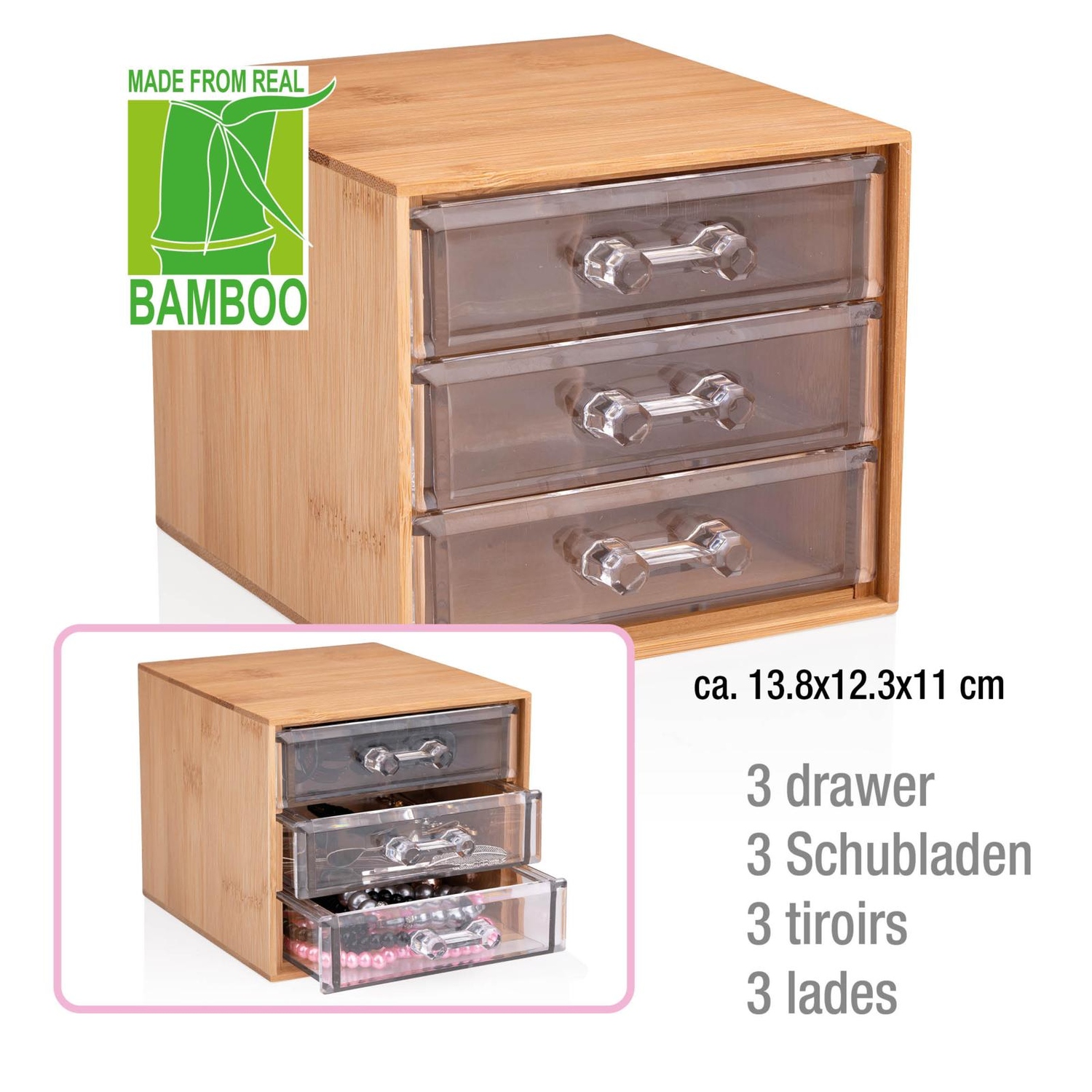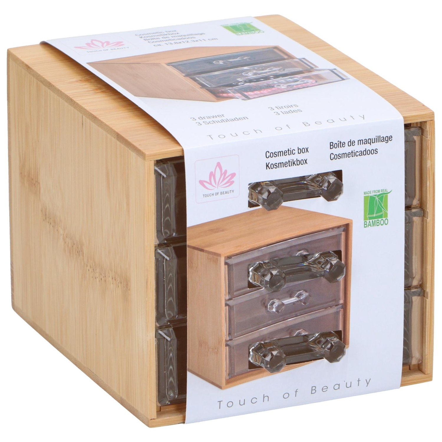 Κουτί Καλλυντικών με 3 Συρτάρια Μπαμπού 13.8x12.3x11cm