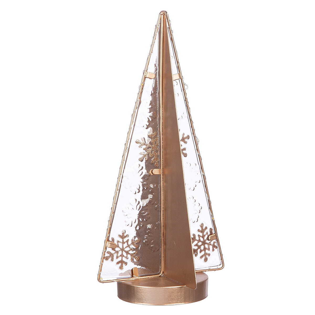 Διακοσμητικό Αντικείμενο (LED) Χριστουγεννιάτικο Δέντρο 'Nevidro' Σχέδιο Νιφάδας Γυαλί/Μέταλλο Σαμπανιζέ 15x15cm
