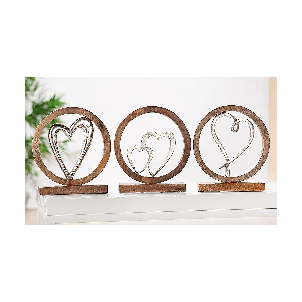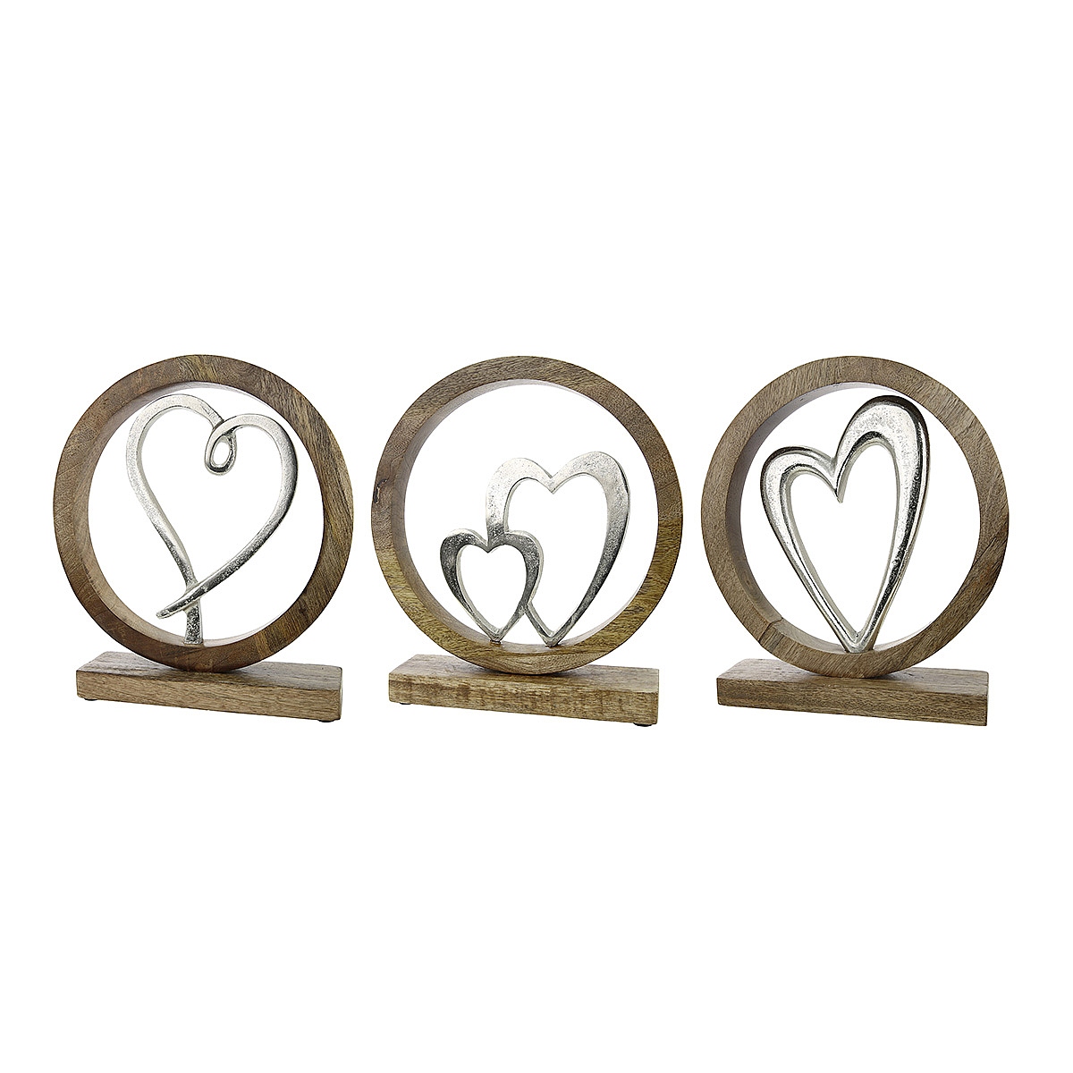 Διακοσμητικό ArteLibre Καρδιά Σε Κύκλο Ασημί/Φυσικό Αλουμίνιο/Ξύλο 5x20.5x26cm Σε 3 Σχέδια