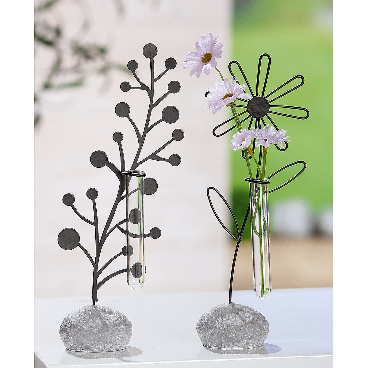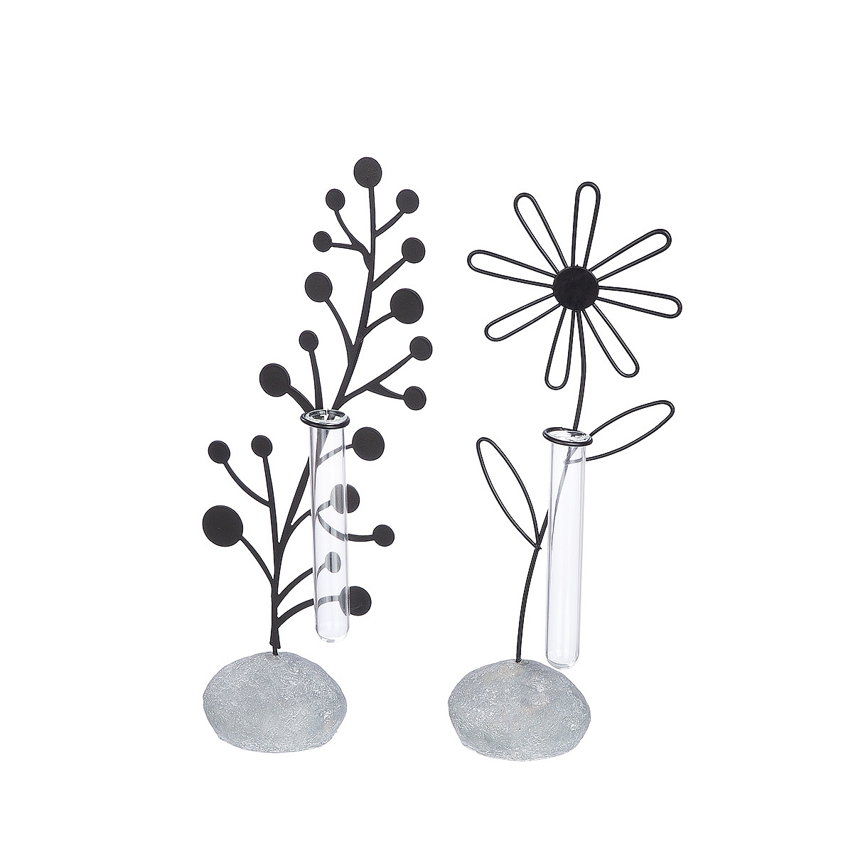 Διακοσμητικό ArteLibre Λουλούδι Σε Πέτρα Με Δοκιμαστικό Σωλήνα Μαύρο/Γκρι Μέταλλο/Γυαλί/Πλαστικό 6x11x24cm
