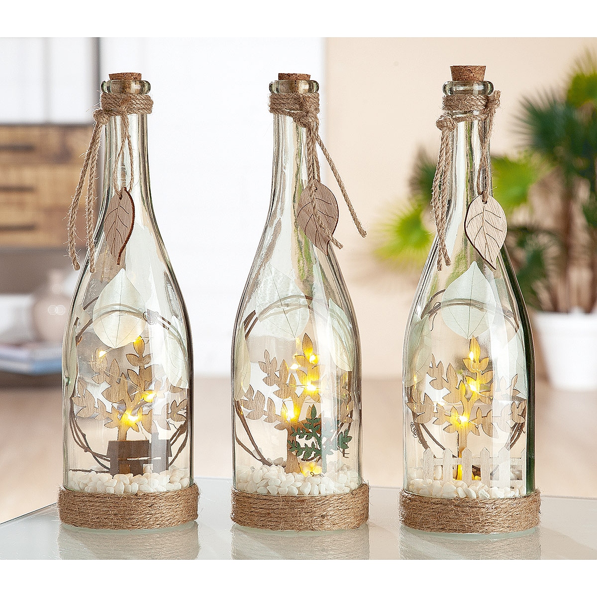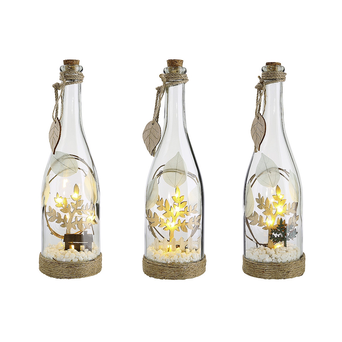 Διακοσμητικό μπουκάλι με εσωτερική διακόσμηση φωτιζόμενο LED σε 3 σχέδια