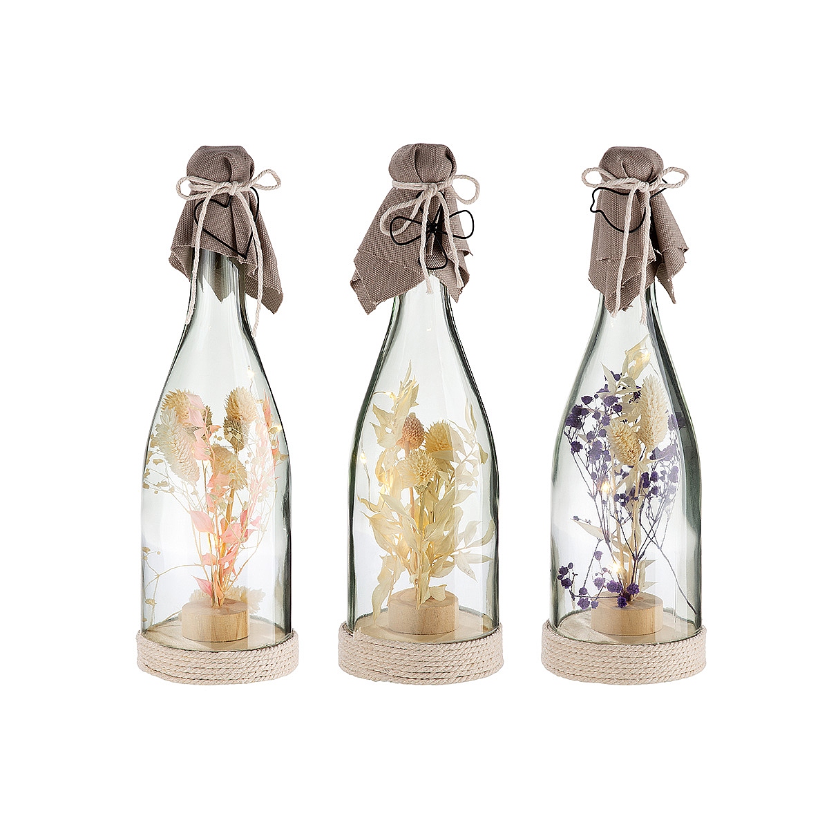 Διακοσμητικό ArteLibre Μπουκάλι Σαμπάνιας Με Εσωτερική Διακόσμηση Φωτιζόμενο LED Διάφανο/Φυσικό Γυαλί 29.5cm Σε 3 Σχέδια