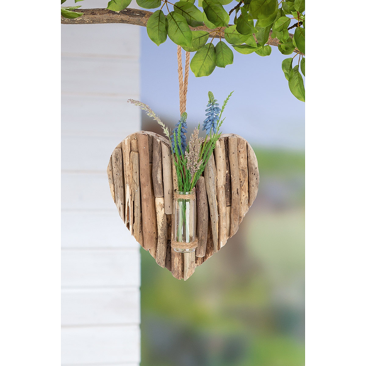 Διακοσμητικό Κρεμαστό ArteLibre Καρδιά Με Δοκιμαστικό Σωλήνα Φυσικό Ξύλο 3.5x21x22cm