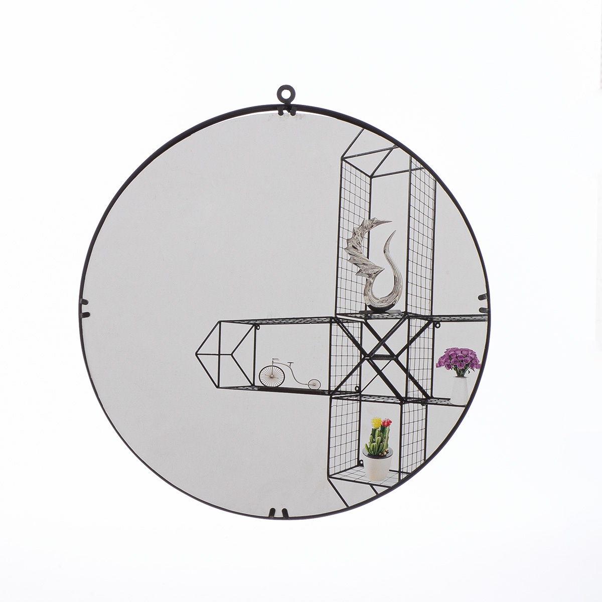 Καθρέφτης "Face" Μέταλλο Καθρέφτης Γυάλινο Μαύρο PU 2 L. 1 Cm H. 42 Cm D. 40 Cm
