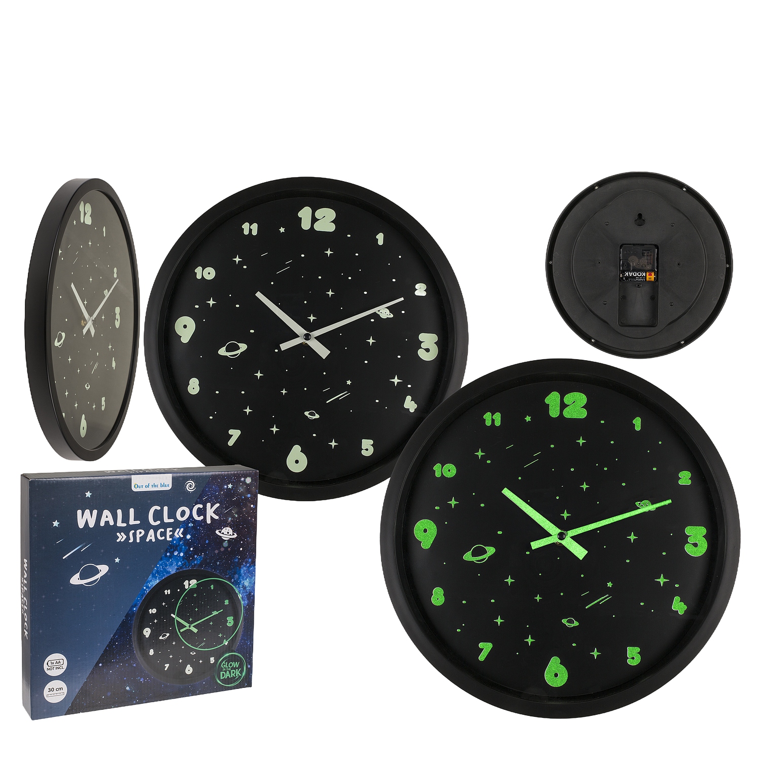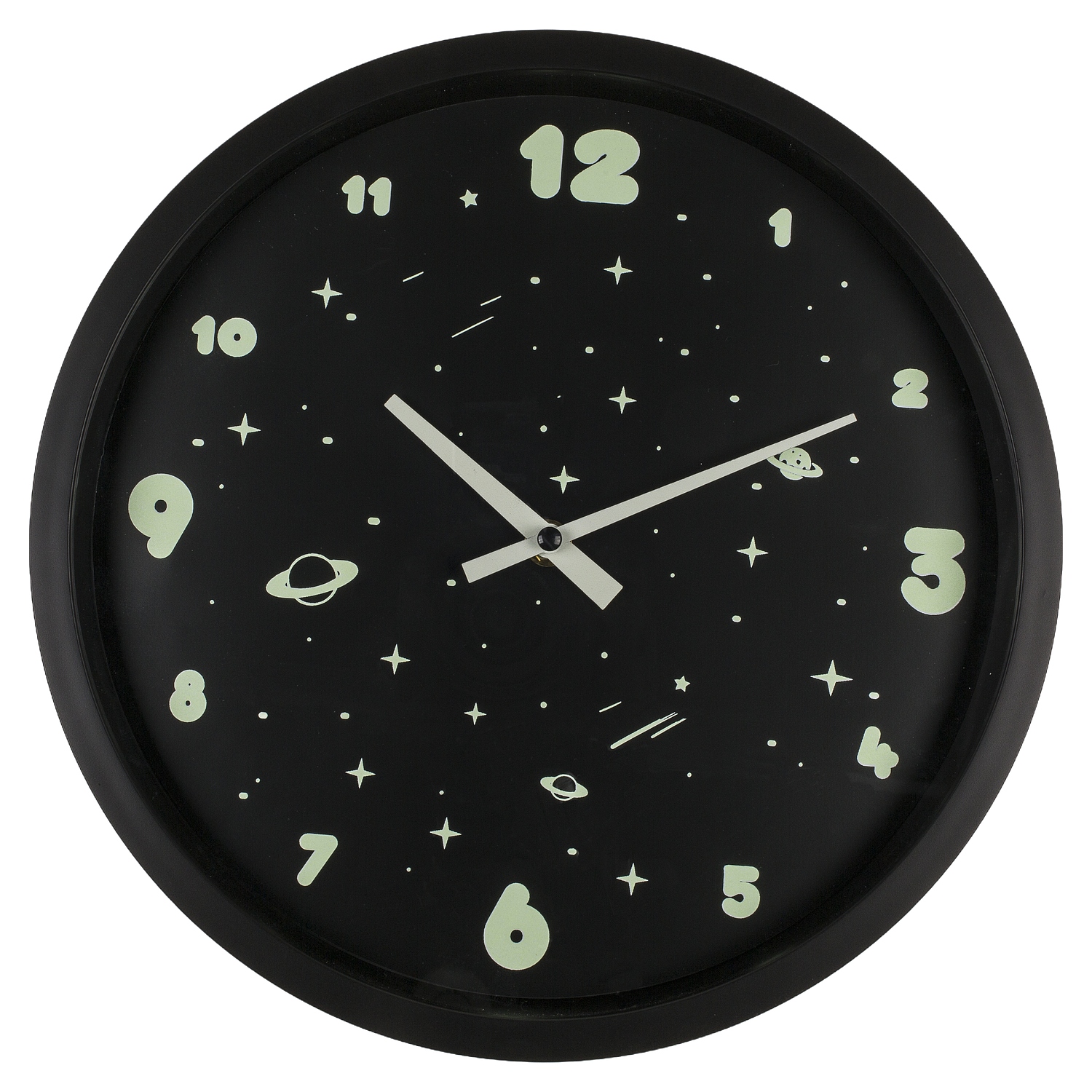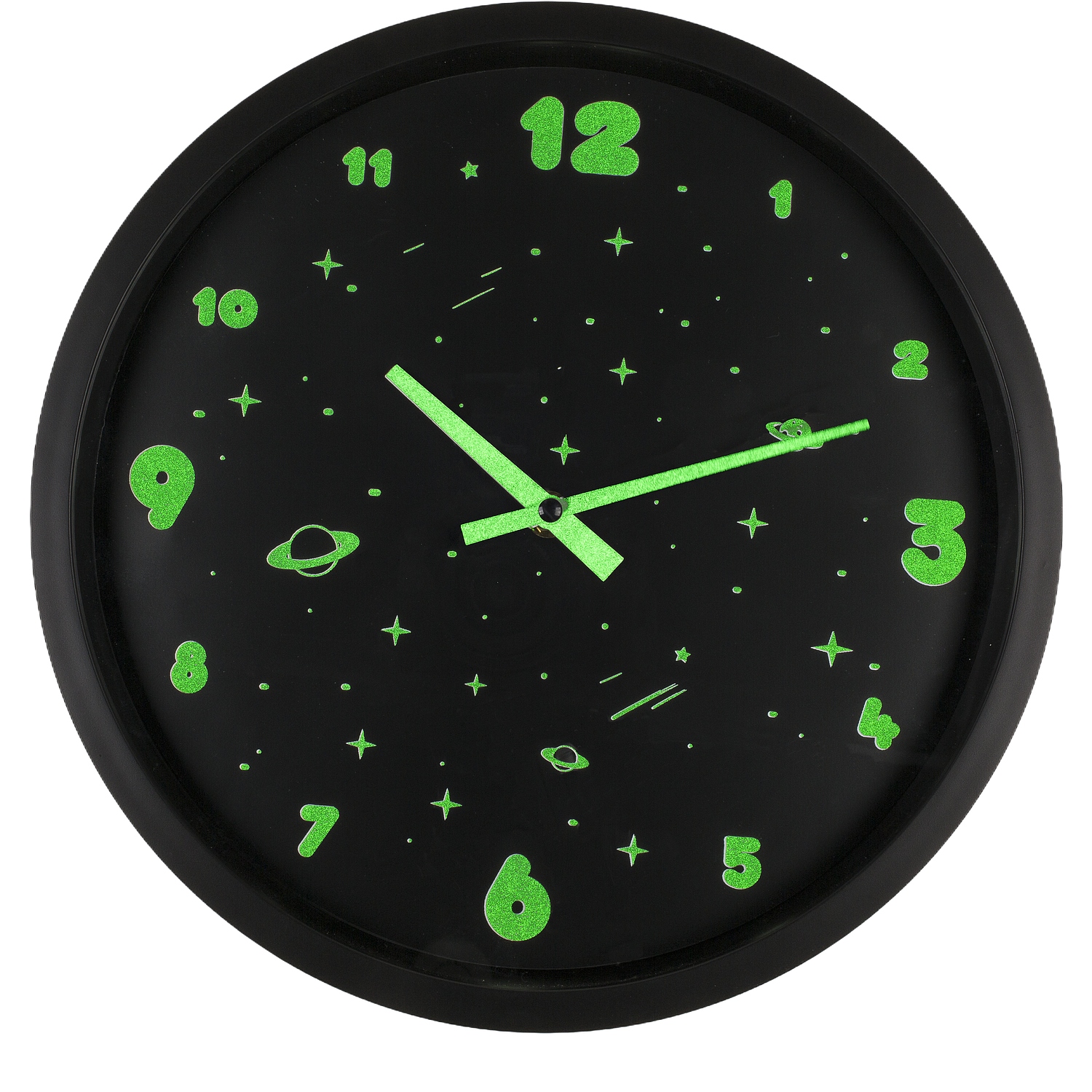 Ρολόι Τοίχου Διάστημα Φωσφοριζέ Μαύρο Πλαστικό Φ30cm