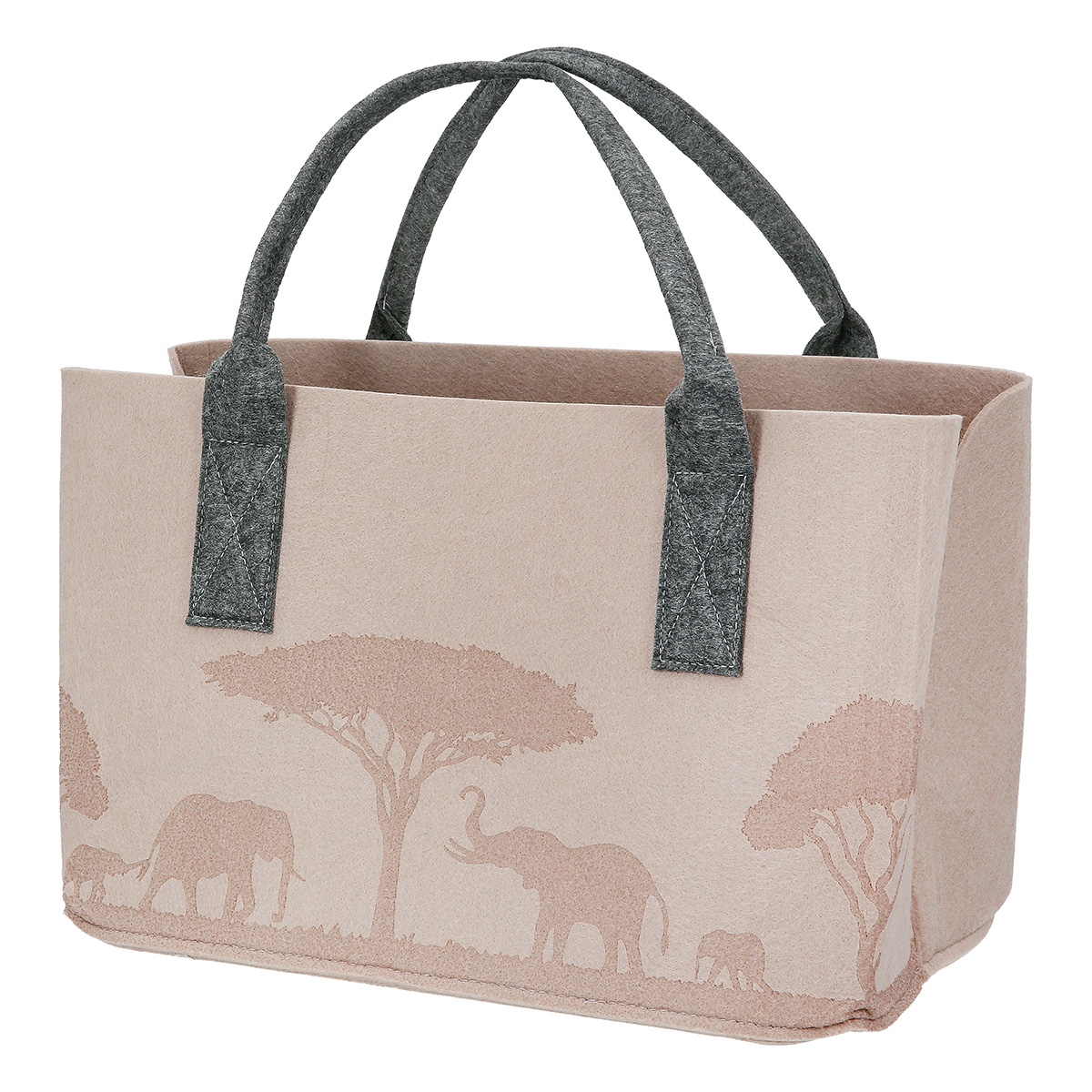 Τσάντα Ορθογώνια Μοτίφ Ελέφαντα Felt Μπεζ Ανοιχτό Γκρι 2 Ποικιλία 40X25X26Cm 40X25X26Cm