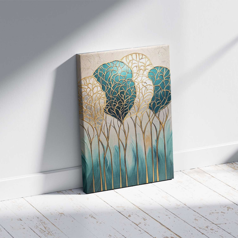 Πίνακας σε Καμβά "golden Leaves" Megapap Ψηφιακής Εκτύπωσης 70x100x3εκ.