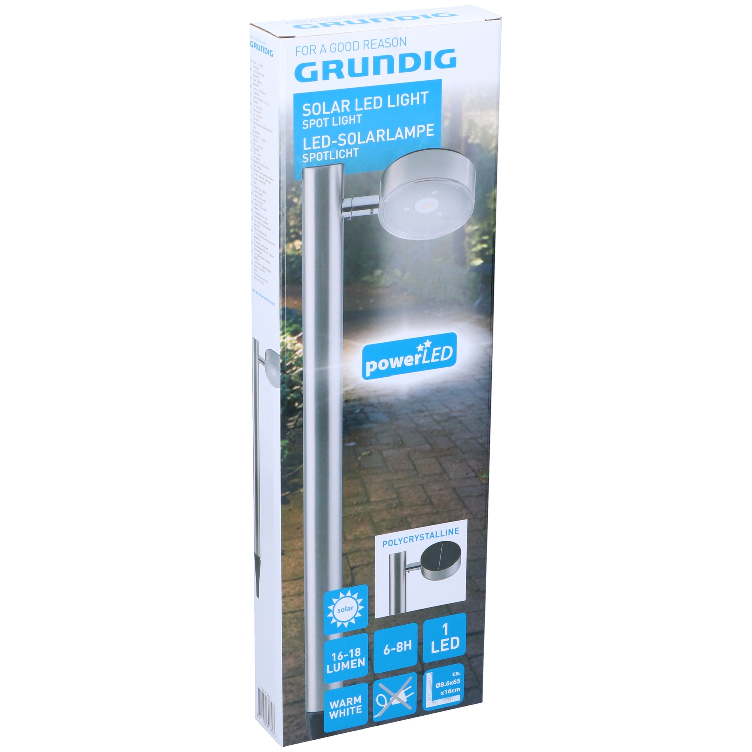Φανάρι Κήπου Spot LED Θερμό Φως Ηλιακό Ασημί Μέταλλο 8.6x65x16cm GRUNDIG