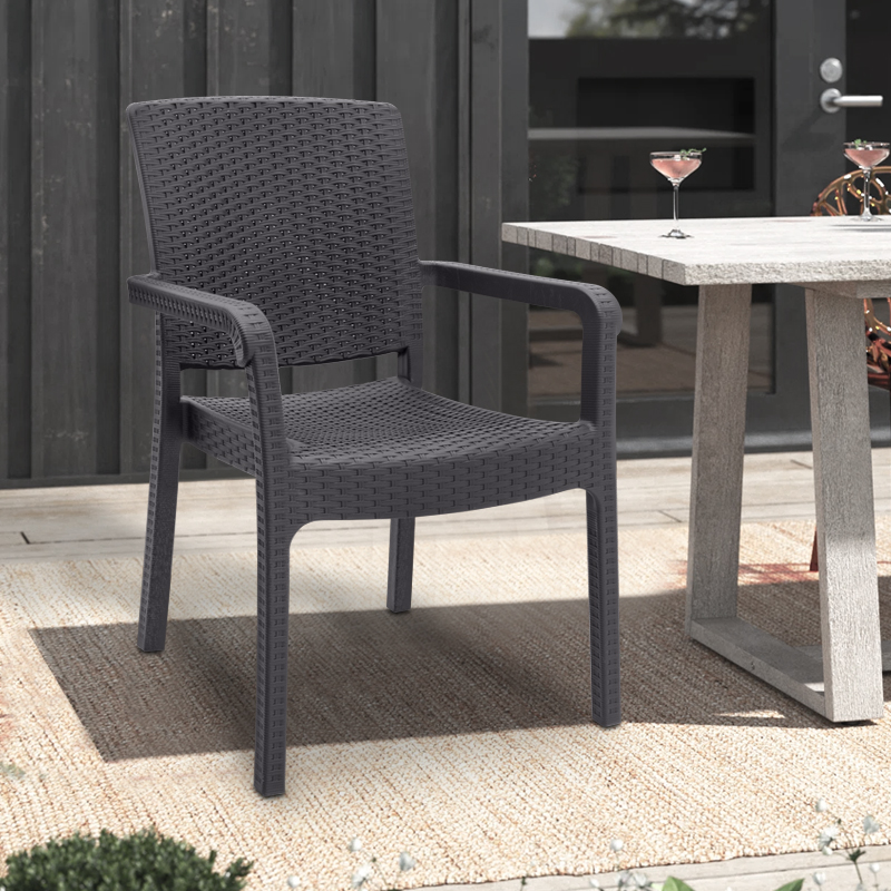 Πολυθρόνα Κήπου Πολυπροπυλενίου με Πλέξη Ραττάν Χρώμα Καφέ 56x60x86,5εκ.