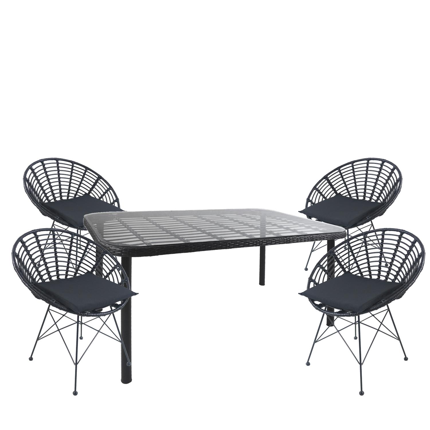 Σετ Τραπεζαρία Κήπου ArteLibre AMPIUS Μαύρο Μέταλλο/Rattan/Γυαλί Με 4 Καρέκλες 14990385