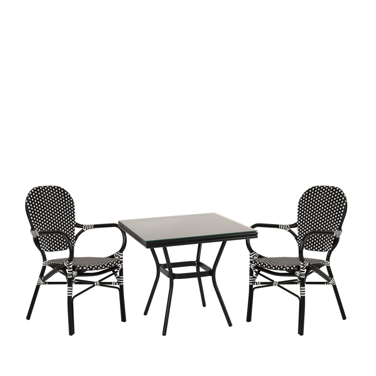 Σετ Τραπεζαρία Κήπου ArteLibre ANGOLA Μαύρο Αλουμίνιο/Γυαλί Με 2 Καρέκλες 14990234