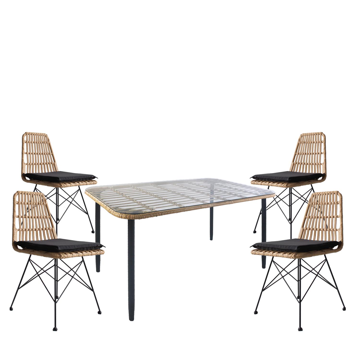 Σετ Τραπεζαρία Κήπου ArteLibre ANNIUS Φυσικό/Μαύρο Μέταλλο/Rattan/Γυαλί Με 4 Καρέκλες 14990289