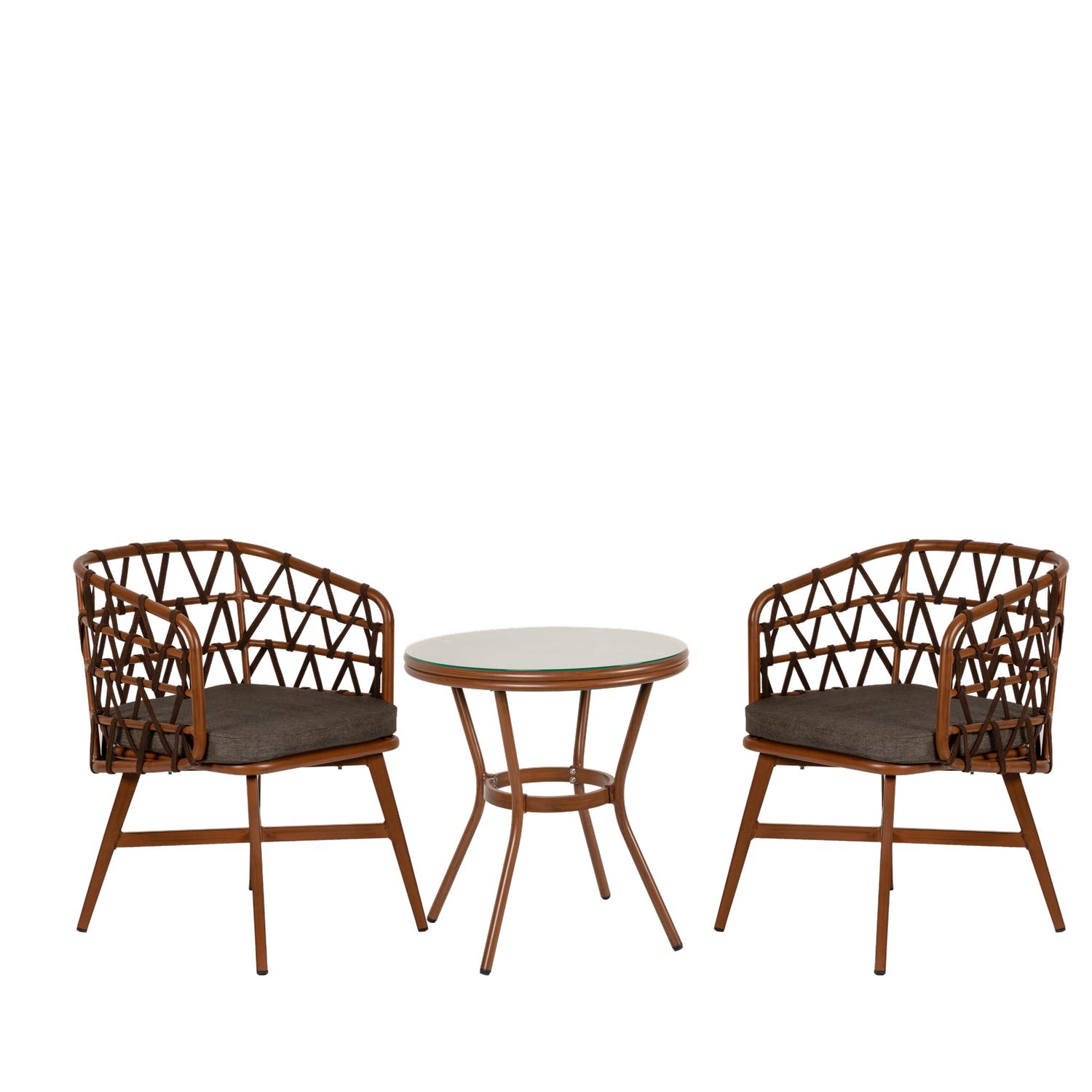 Σετ Τραπεζαρία Κήπου ArteLibre BURUNDI Μπαμπού Αλουμίνιο/Γυαλί Με 2 Πολυθρόνες 14990231