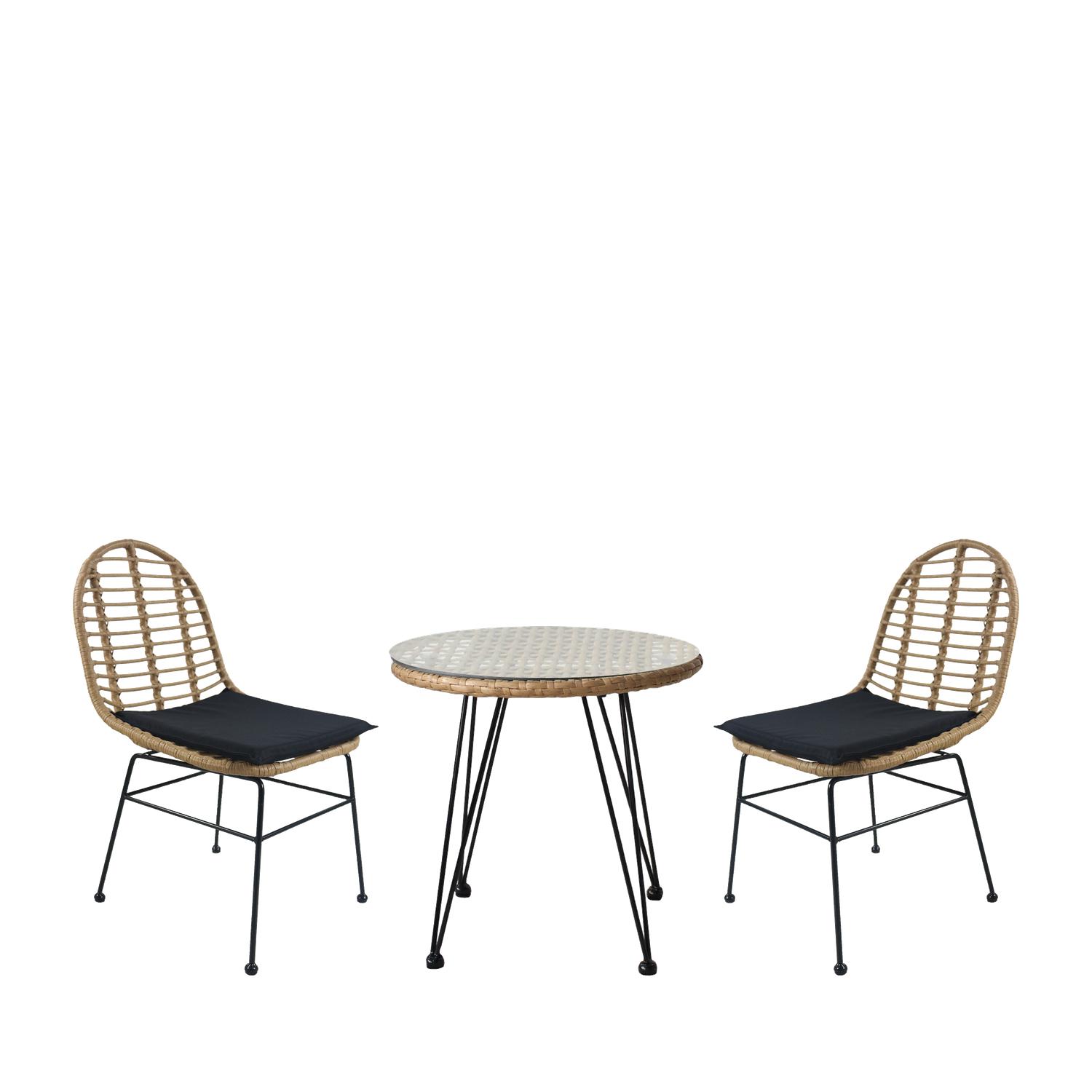 Σετ Τραπεζαρία Κήπου ArteLibre EUSEBIO Φυσικό/Μαύρο Μέταλλο/Rattan Με 2 Καρέκλες 14990326