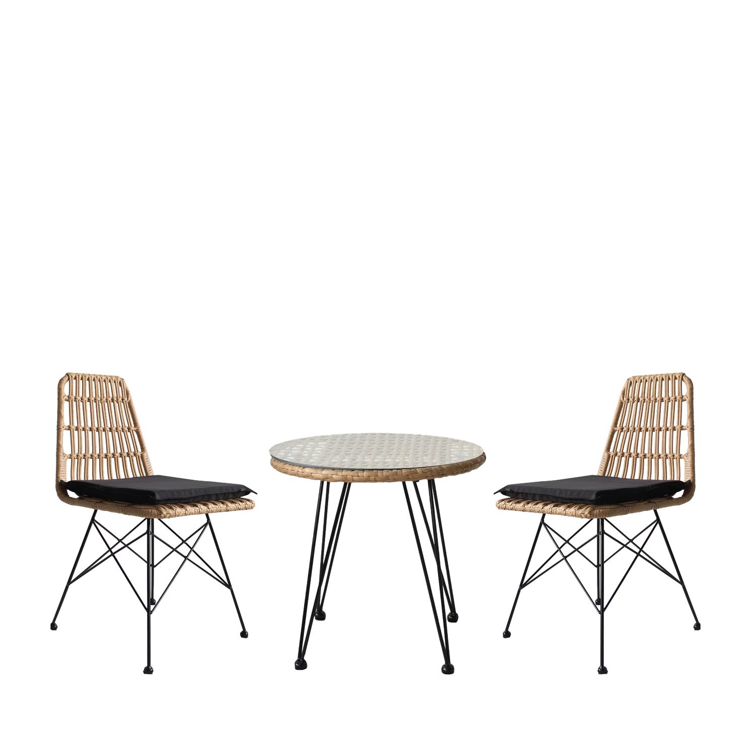 Σετ Τραπεζαρία Κήπου ArteLibre EUSEBIO Φυσικό/Μαύρο Μέταλλο/Rattan Με 2 Καρέκλες 14990330