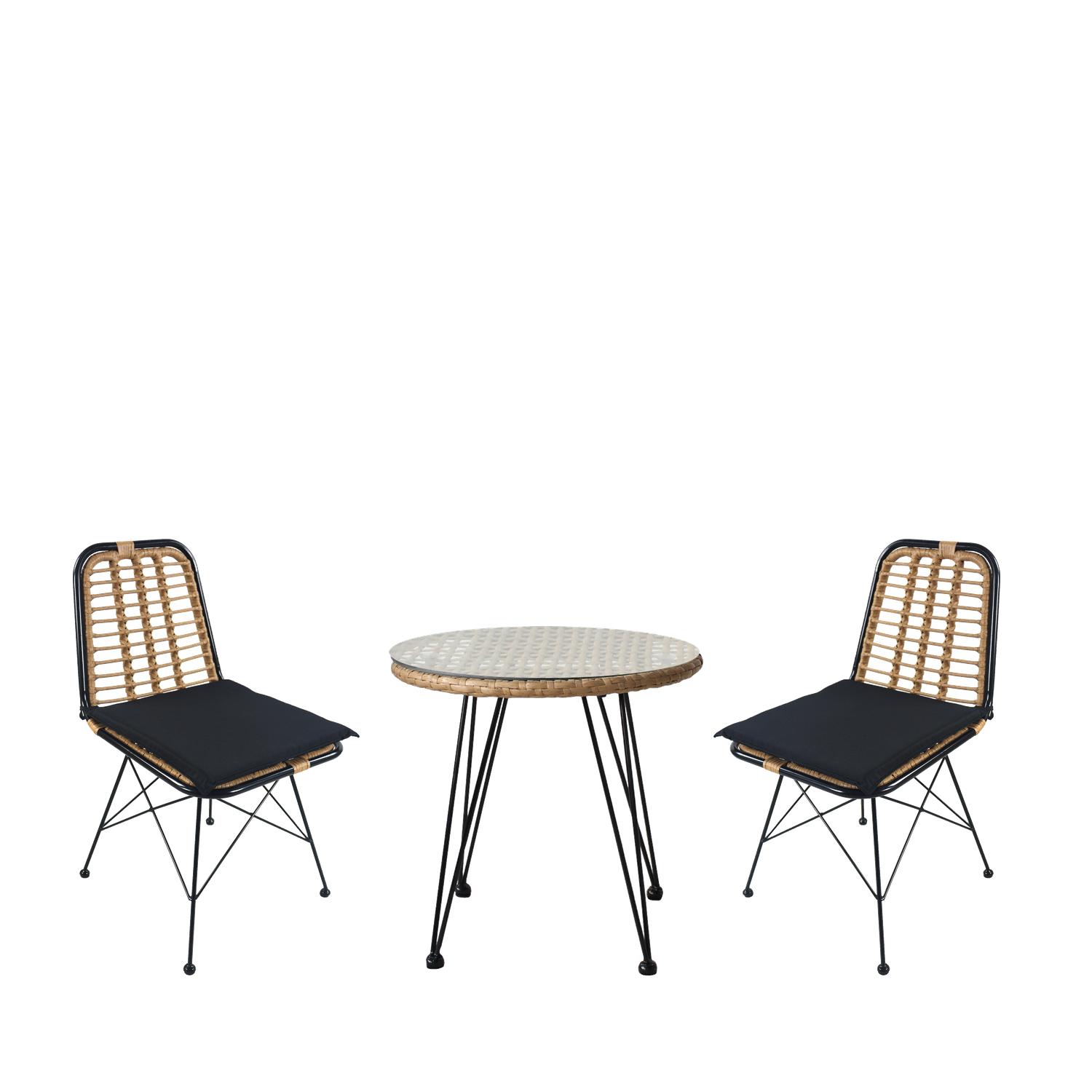 Σετ Τραπεζαρία Κήπου ArteLibre EUSEBIO Φυσικό/Μαύρο Μέταλλο/Rattan Με 2 Καρέκλες 14990342