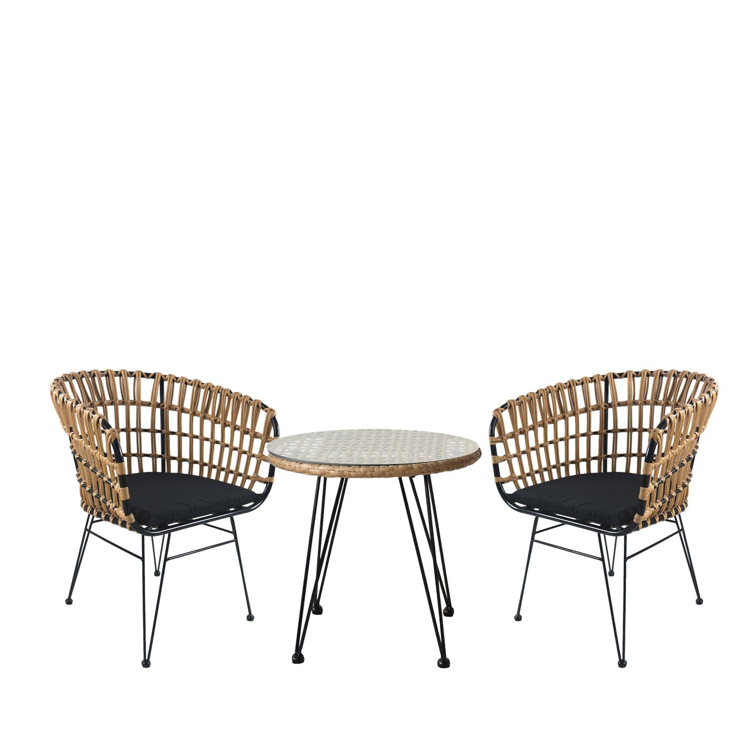 Σετ Τραπεζαρία Κήπου ArteLibre EUSEBIO Φυσικό/Μαύρο Μέταλλο/Rattan Με 2 Καρέκλες 14990346