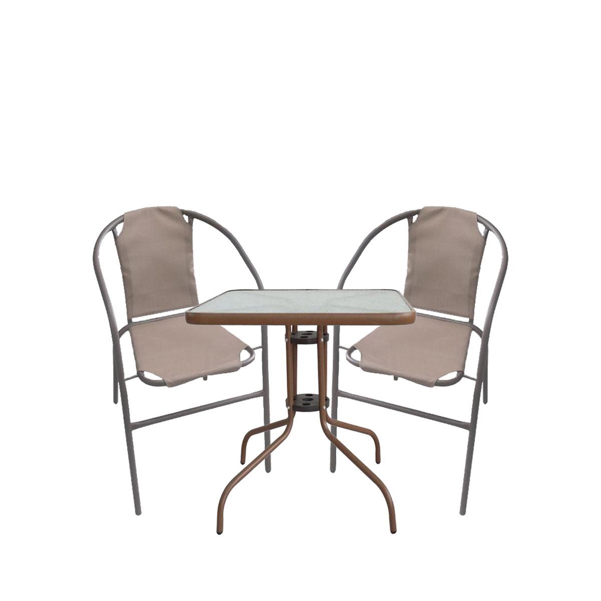 Σετ Τραπεζαρία Κήπου Mars Μέταλλο Καφέ Με 2 Πολυθρόνες